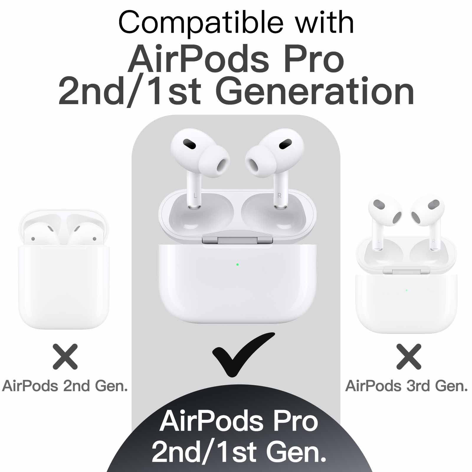 • [Compatibility] Compatible with AirPods Pro 2nd/1st generation 2023/2022/2019 released. Do not fit any other models. Please note that the earbuds and charging case are not included