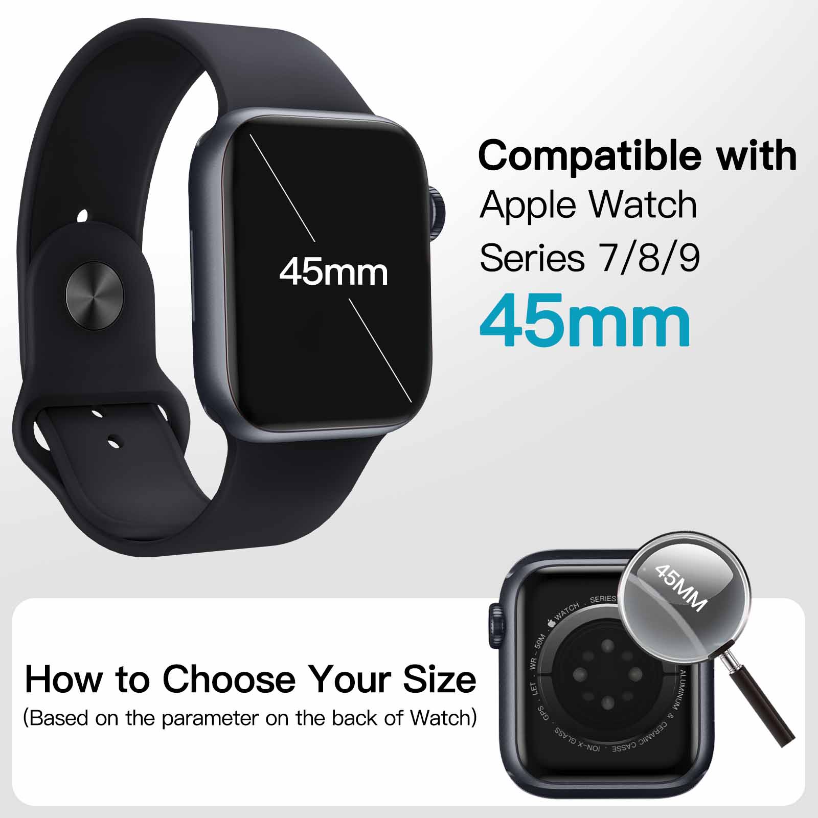 [Perfect Fit] Compatible with Apple Watch Series 9 8 7 45mm. Please check the back of your device to find the watch model. Also precise cutouts for watch allow you to access all features easily