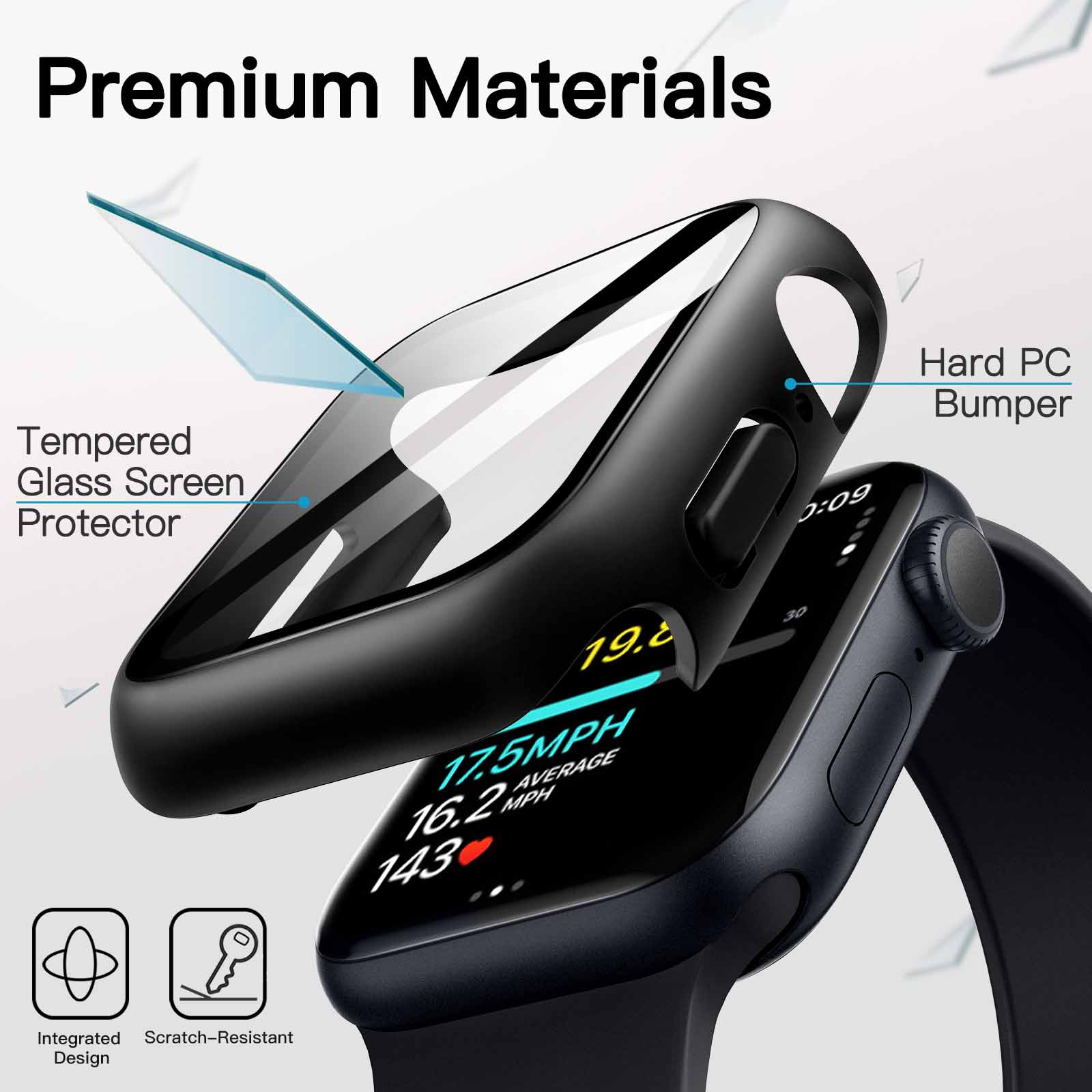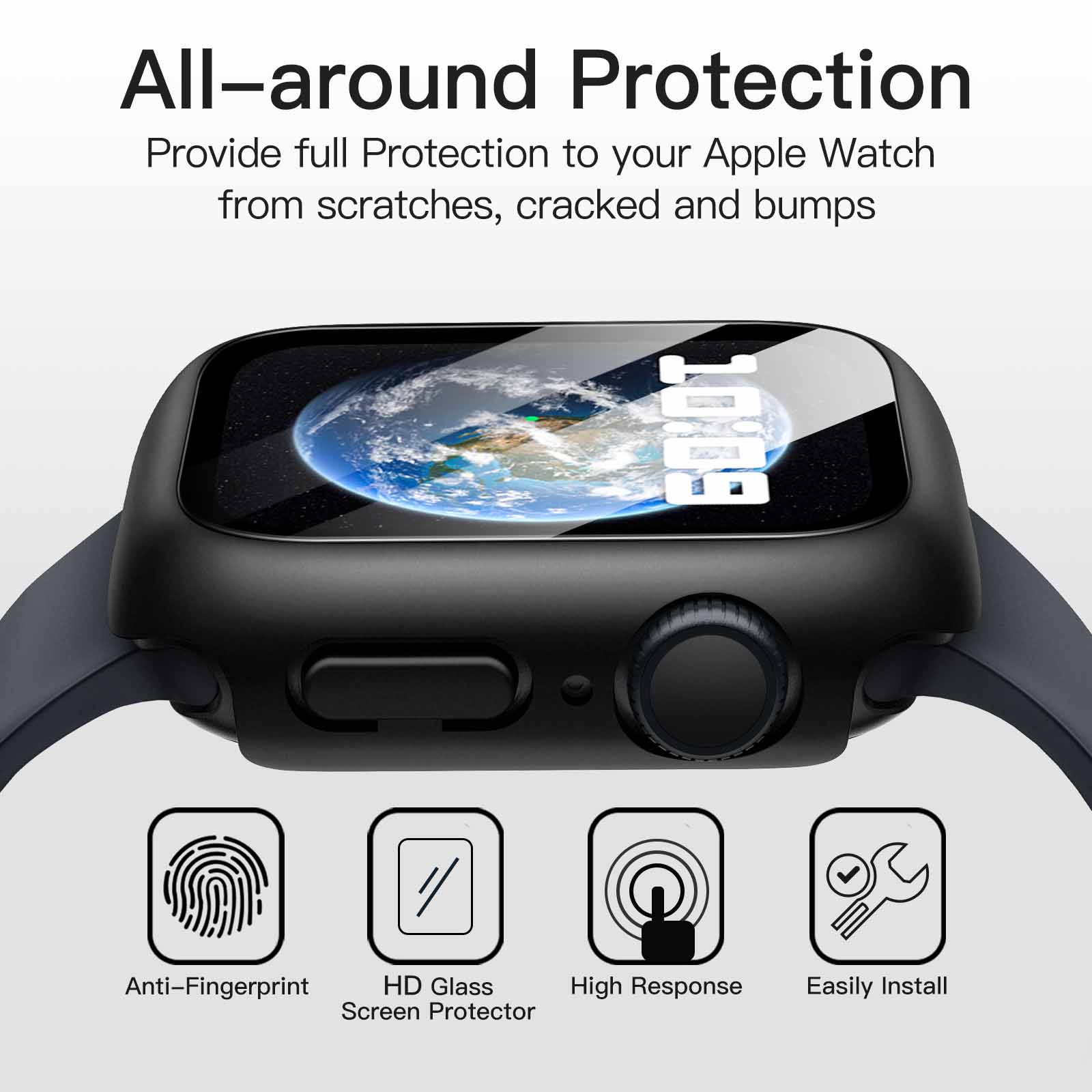 [High Protection] Integrated with hard PC bumper and 9H hardness tempered glass film, the case fully covers the entire front and curved edges of your watch, providing enhanced protection against daily drops and scratches