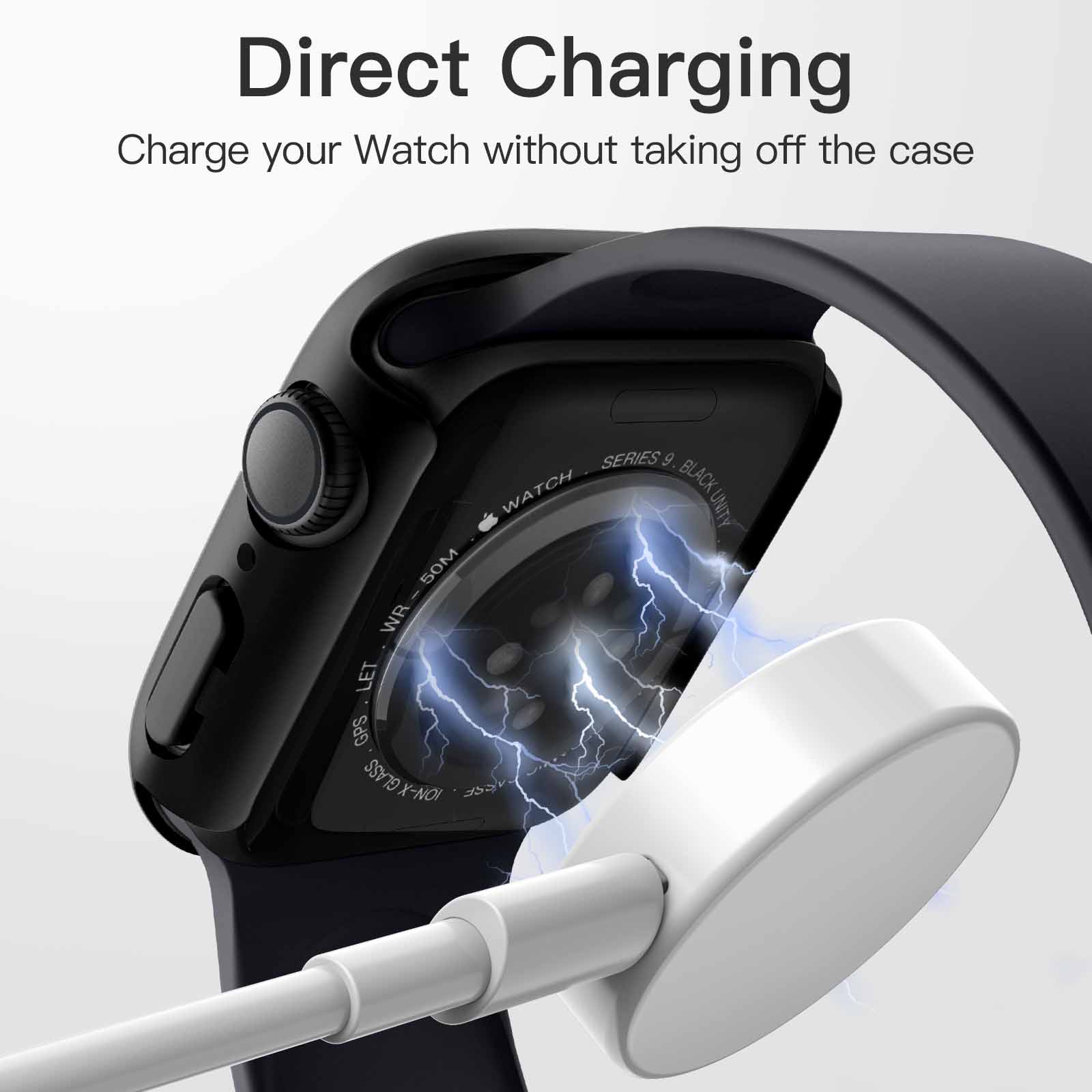 [Easy to Use] With a snap-on design, you can install the screen protector case directly to your watch without taking off the watch band. In addition, semi-wrapped design supports direct charging without removing the case