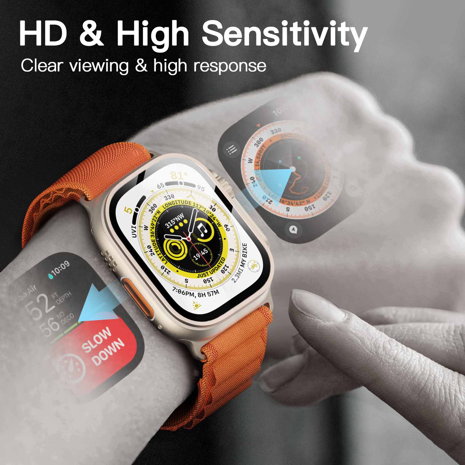 • [Full Coverage Protection] This Apple Watch Ultra screen protector is precisely cut, provides seamless coverage for the screen and perfectly prevents dust from gathering around the screen’s edge