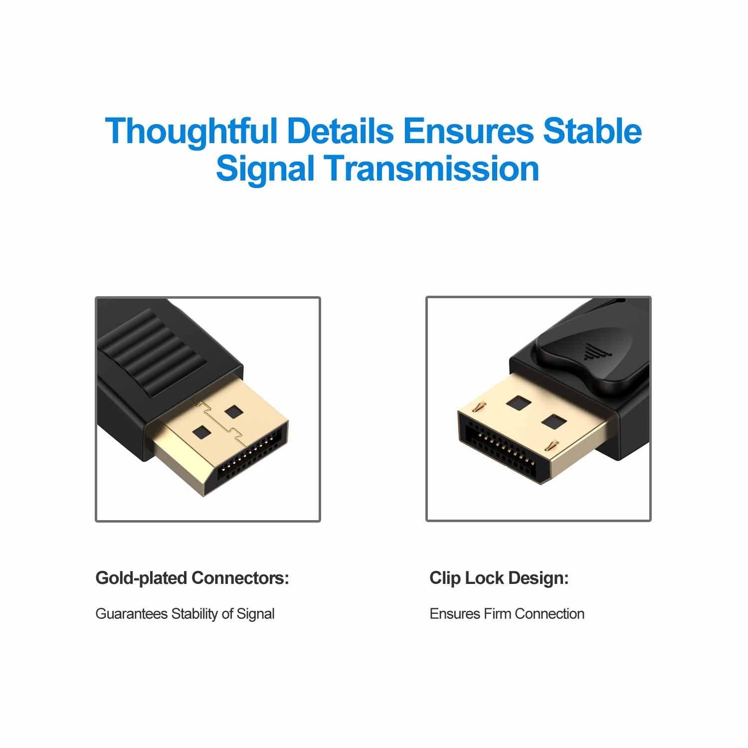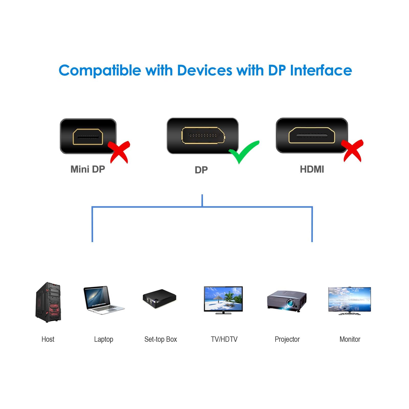 • The 15 feet cable connects a DisplayPort (DP) enabled computer to a HD monitor or projector with DisplayPort port input for audio and video streaming. (Note: NOT compatible with 144Hz video display)