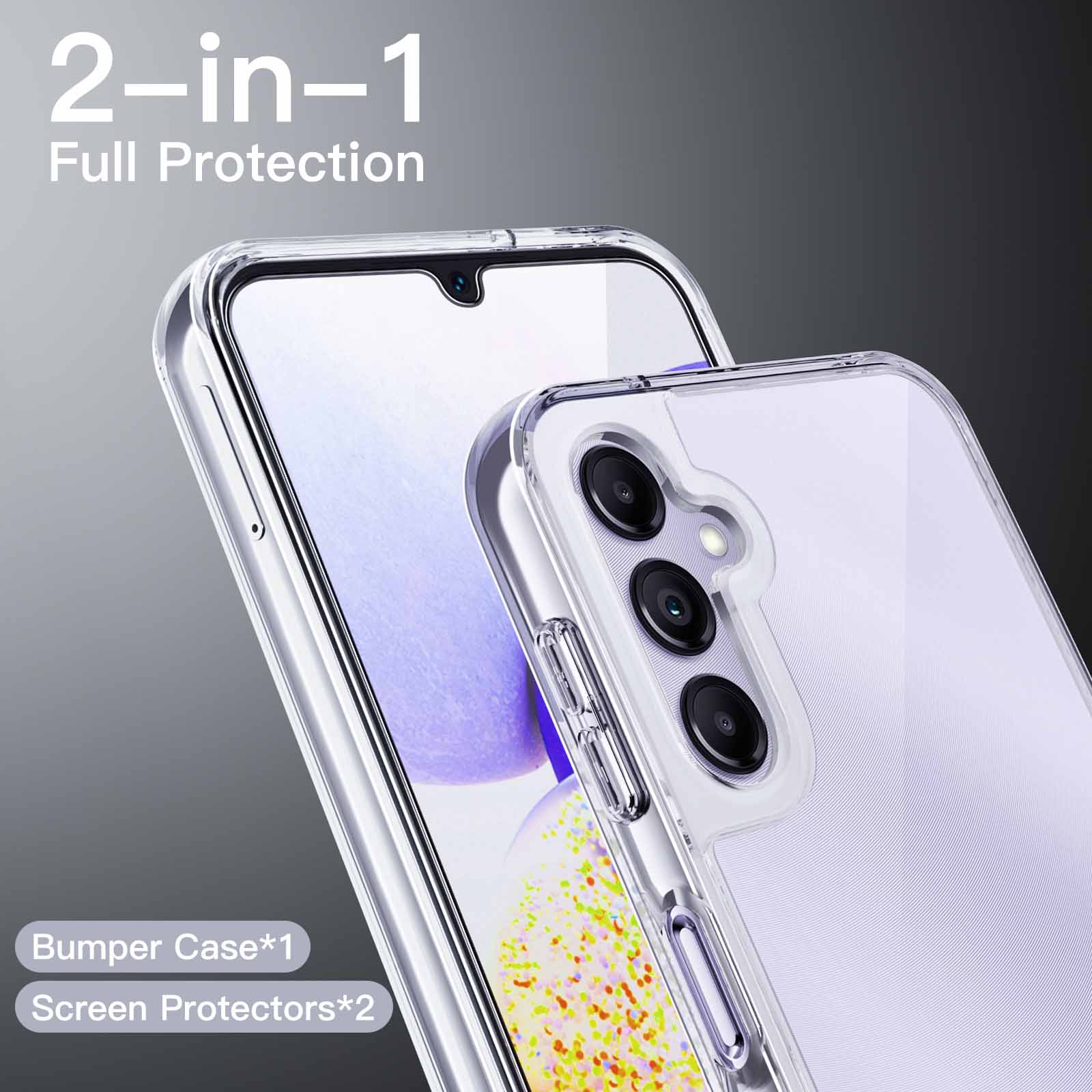 [2-in-1 High Protection] Tailor-made for Samsung Galaxy A14 5G 6.6-inch. You will receive a protective clear case and 2-pack tempered glass screen protectors, bringing comprehensive protection to your device
