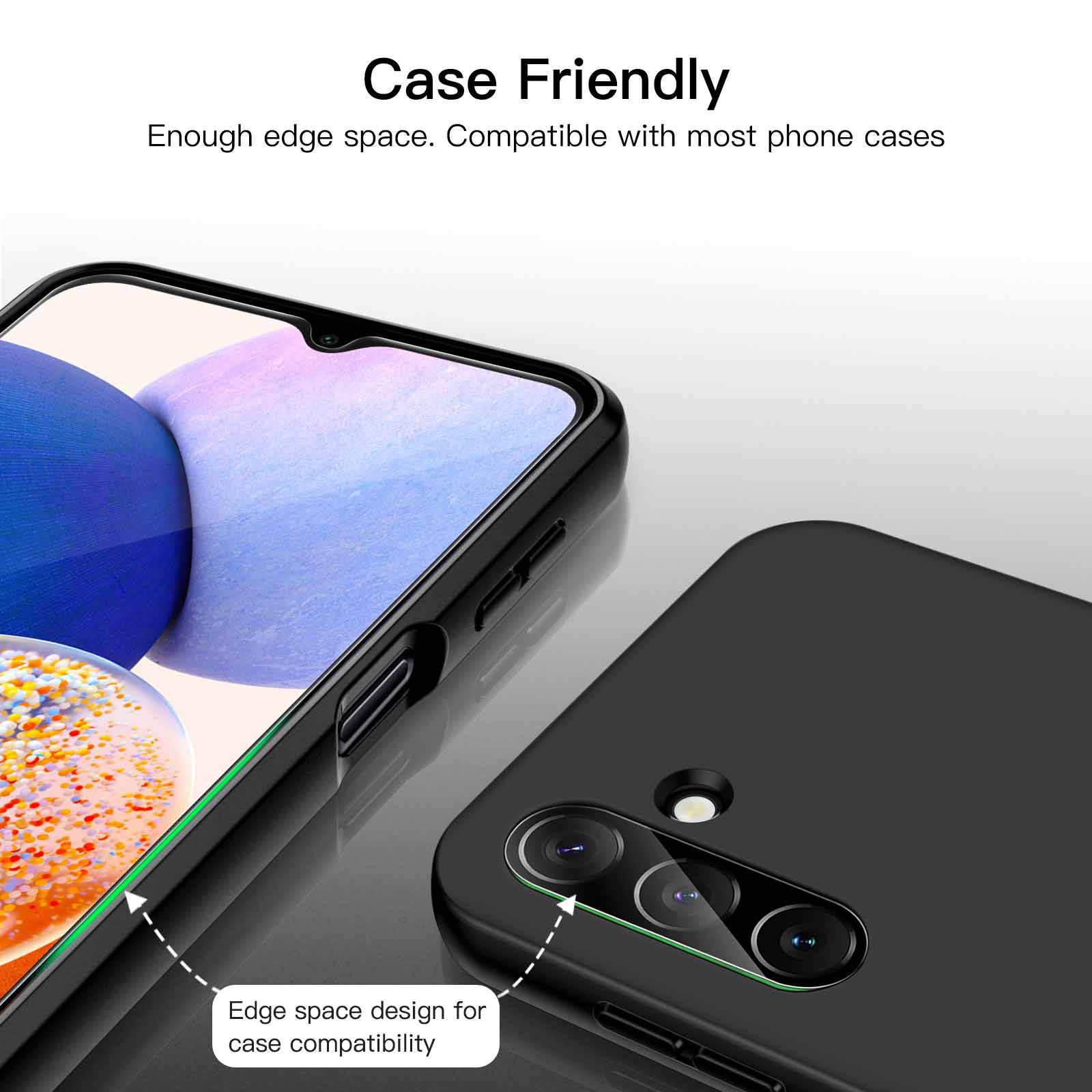 [Compatibility] Designed for Samsung Galaxy A14 5G 6.6-inch for great protection. Designed with thoughtful 2.5D curved edges, compatible with most phone cases. Please kindly check your device model before purchasing