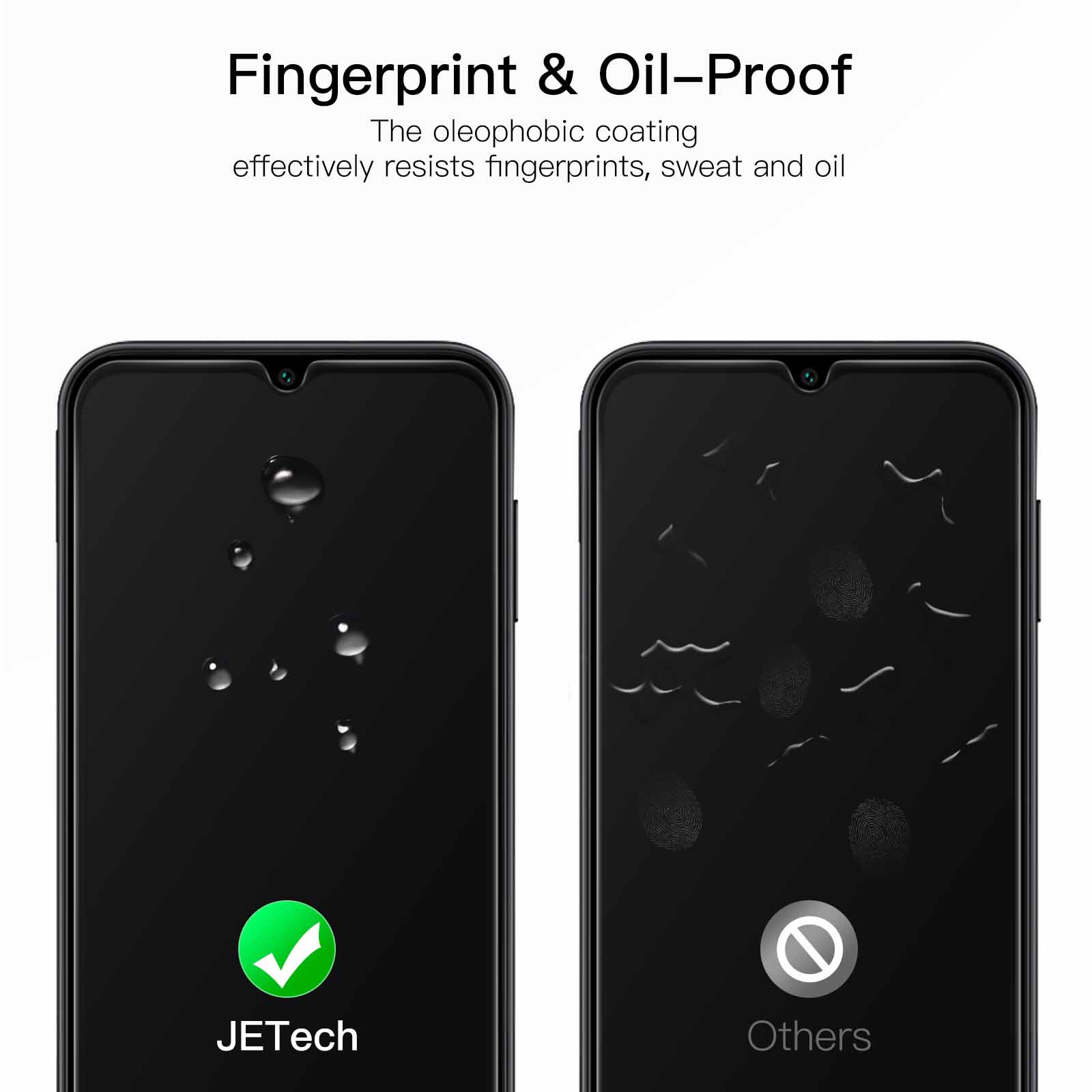 [Fingerprint & Oil-Proof] The hydrophobic and oleophobic coating prevents fingerprints, oil residue and sweat from gathering on the screen. Always maintain a clean screen environment for you