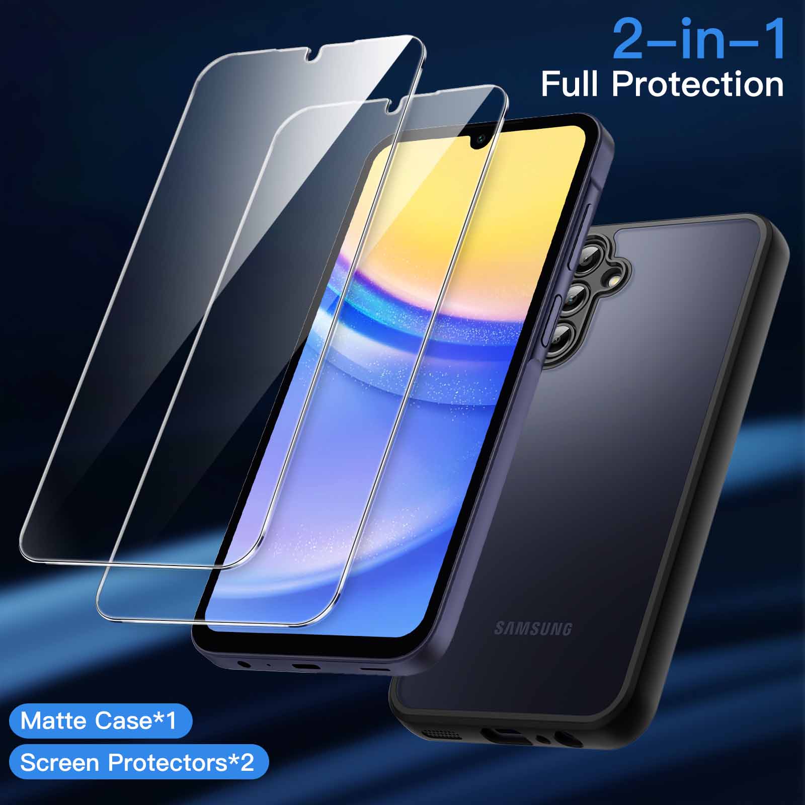 [Dual Protection] Tailor-made for Samsung Galaxy A15 5G. You will receive a shockproof matte case and 2-pack tempered glass screen protectors, highly protecting your device against daily drops, bumps and scratches