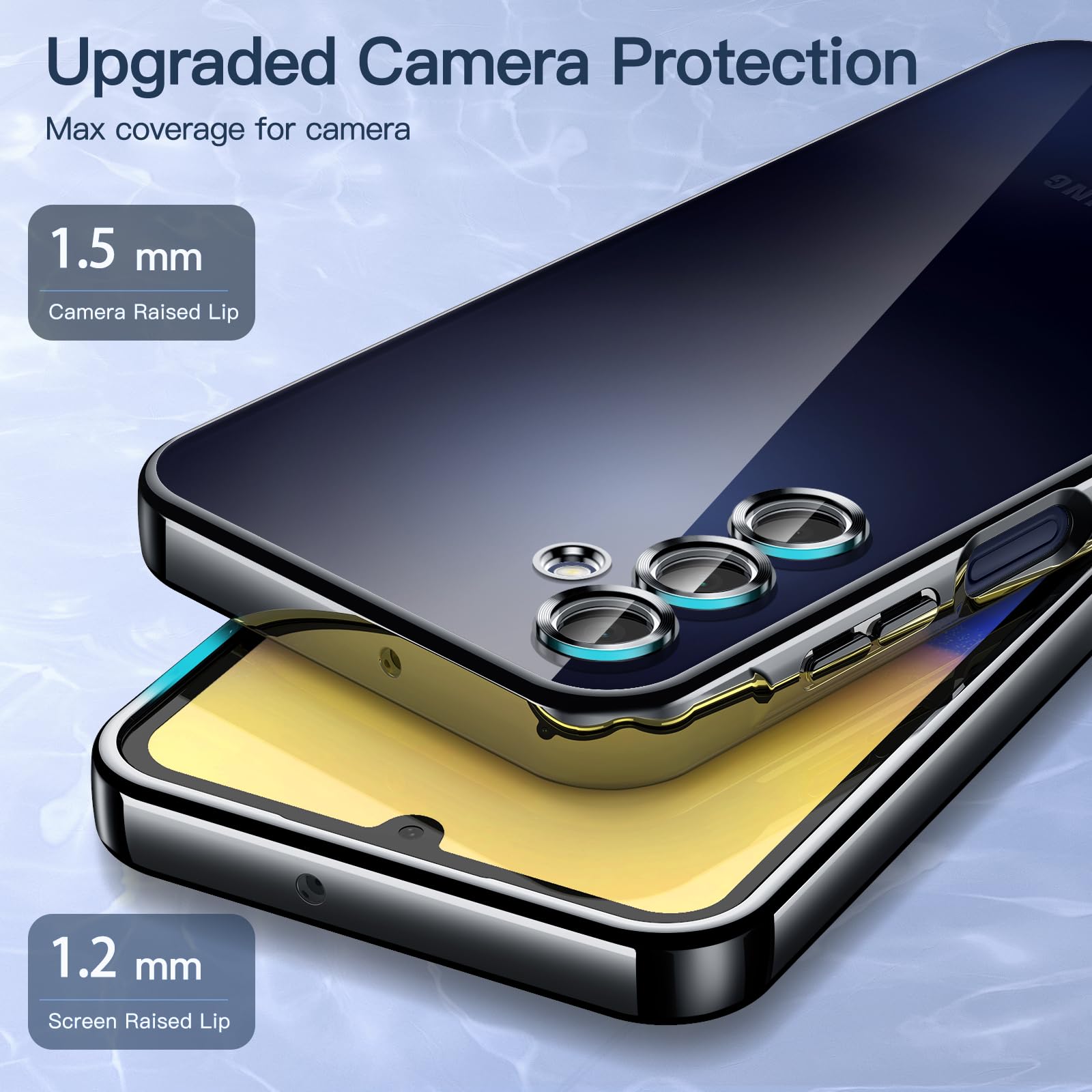 • [Camera Full Protection] Precise cutouts for camera lenses give full cover protection to camera yet keep natural camera photography experience. Besides, 1.2mm raised edges for the screen and 1.5mm for the camera provide extra protection for the phone