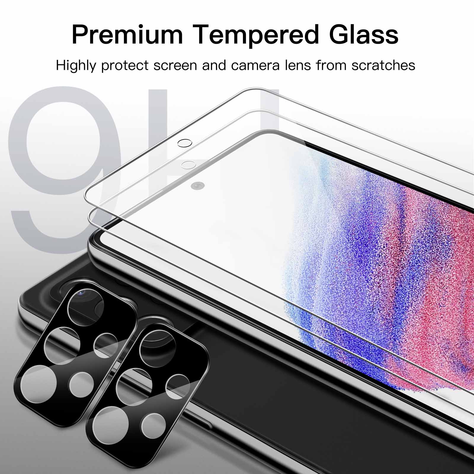 [Trustworthy Protection] The 9H hardness tempered glass (harder than a knife) protects your screen and camera lens from daily scratches and abrasions