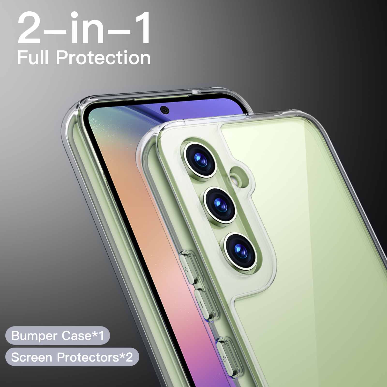 • [2-in-1 High Protection] Tailor-made for Samsung Galaxy A54 5G 6.4-inch. You will receive a protective clear case and 2-pack tempered glass screen protectors, bringing comprehensive protection to your device