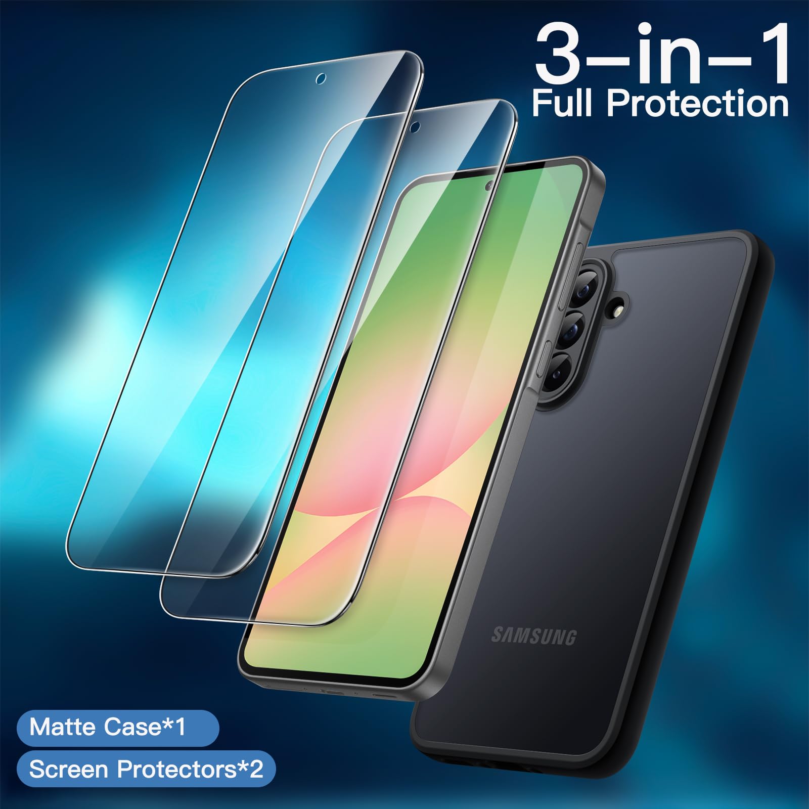 [Dual Protection] Tailor-made for Samsung Galaxy A56 5G. NOTE: Not for Samsung Galaxy A54 / A55. You will receive a shockproof matte case and 2 pack tempered glass screen protectors, bringing comprehensive protection to your device