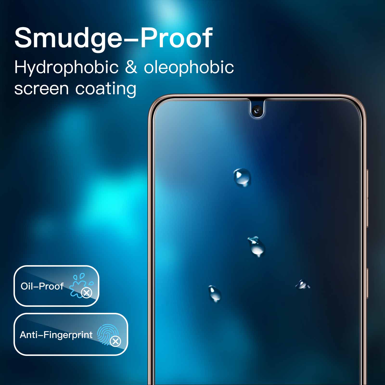 [Anti-Fingerprint] The hydrophobic and oleophobic coating effectively prevents the residue of fingerprints, oil and watermark from gathering on the screen