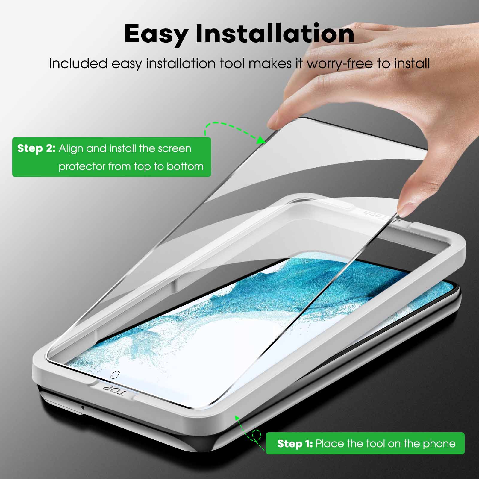 JETech Screen Protector for Samsung Galaxy S22 /S22 Plus 5G with Camera Lens Protector, Easy Installation Tool, Tempered Glass Film, Fingerprint ID Compatible, 2-Pack Each