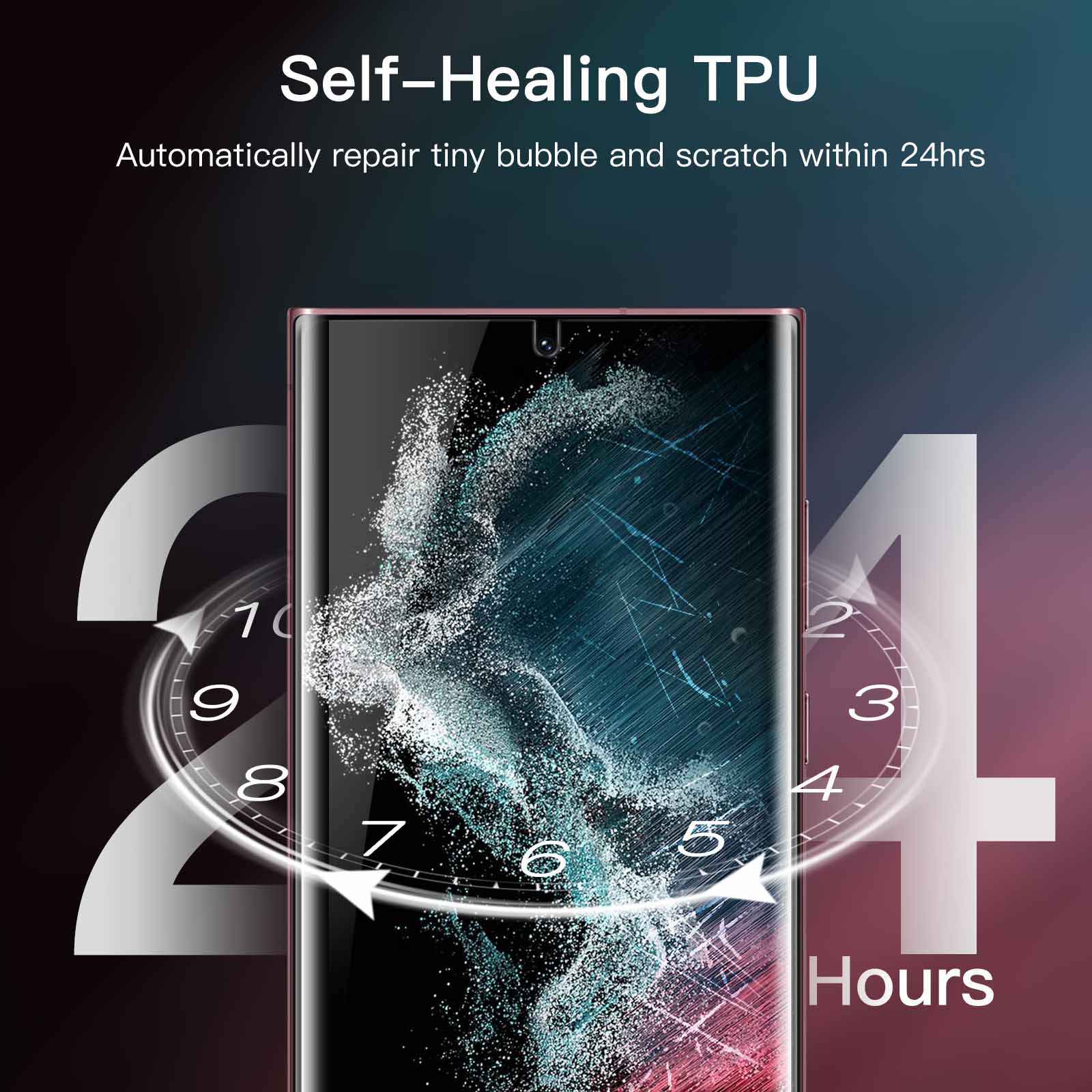 [Flexible TPU Film] Built with self-healing TPU material for maximum protection against scratches. Meanwhile, small bubbles or slight scratches on screen protector, if any, will automatically disappear within 24 hours