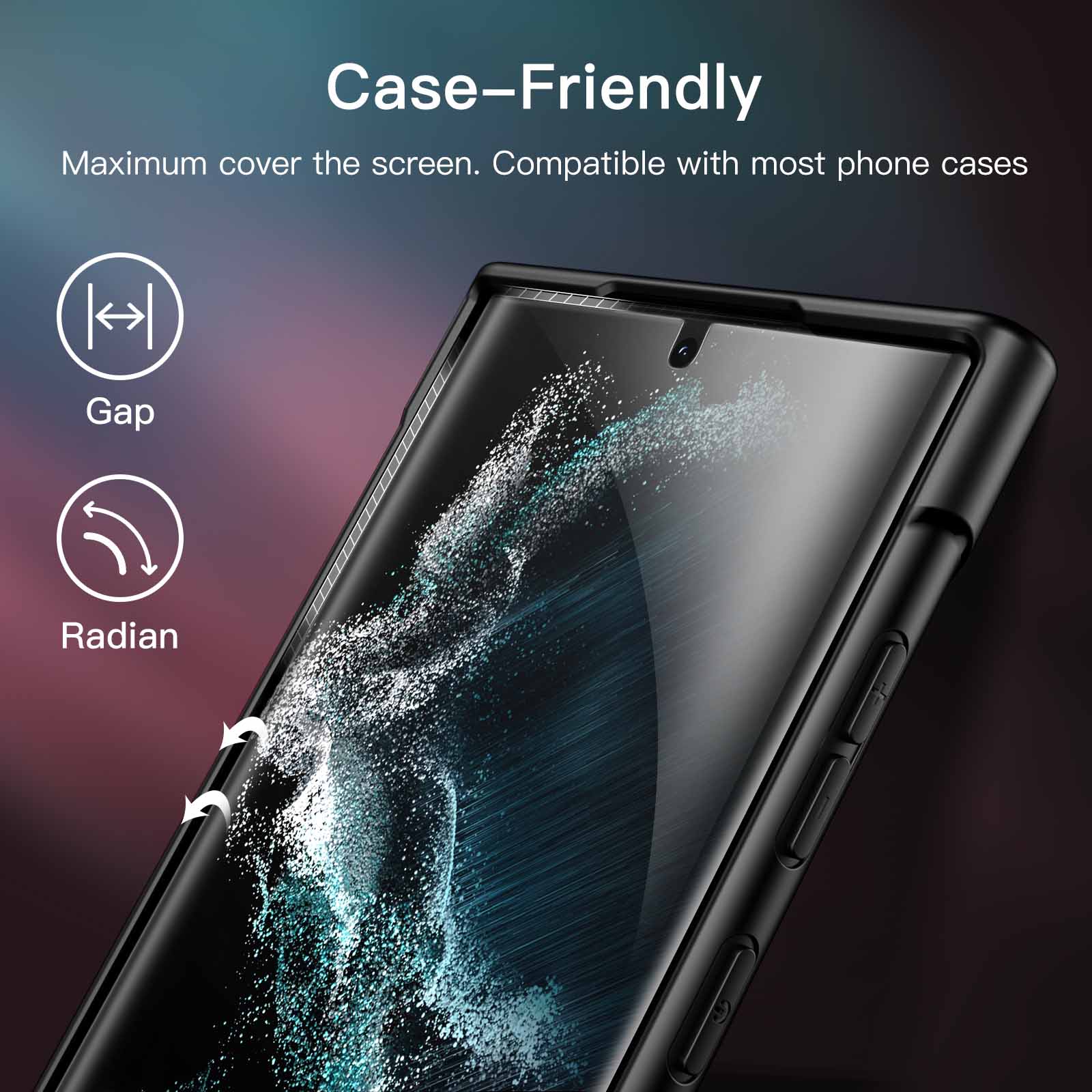 [Case-Friendly] The flexible TPU film fully covers the curved edges of the screen, and keeps away from the dust and debris while leaving enough edge space for using most phone cases