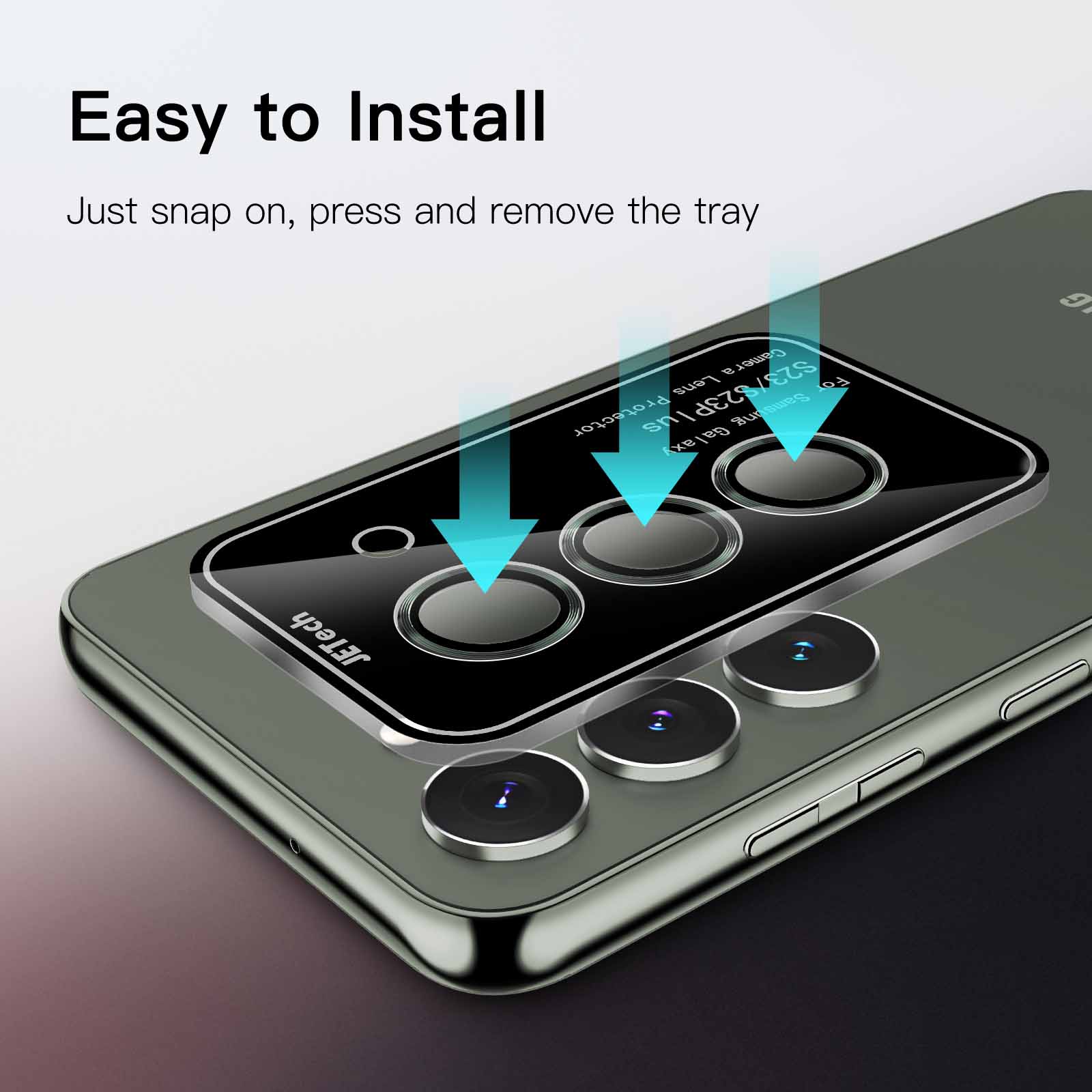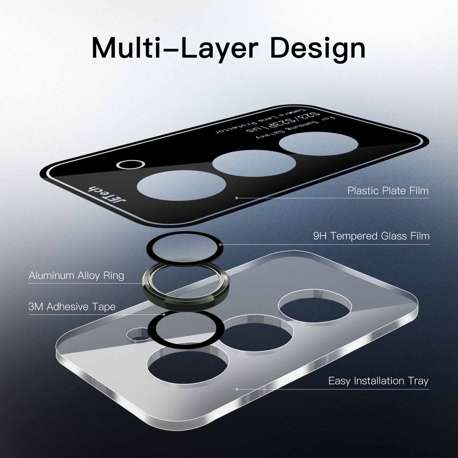 [Super Easy Installation] The lens protectors are preset in an easy installation tray. Simply peel off the plastic plate, align and firmly press down the lens protectors to the camera lenses, and then remove the tray.
