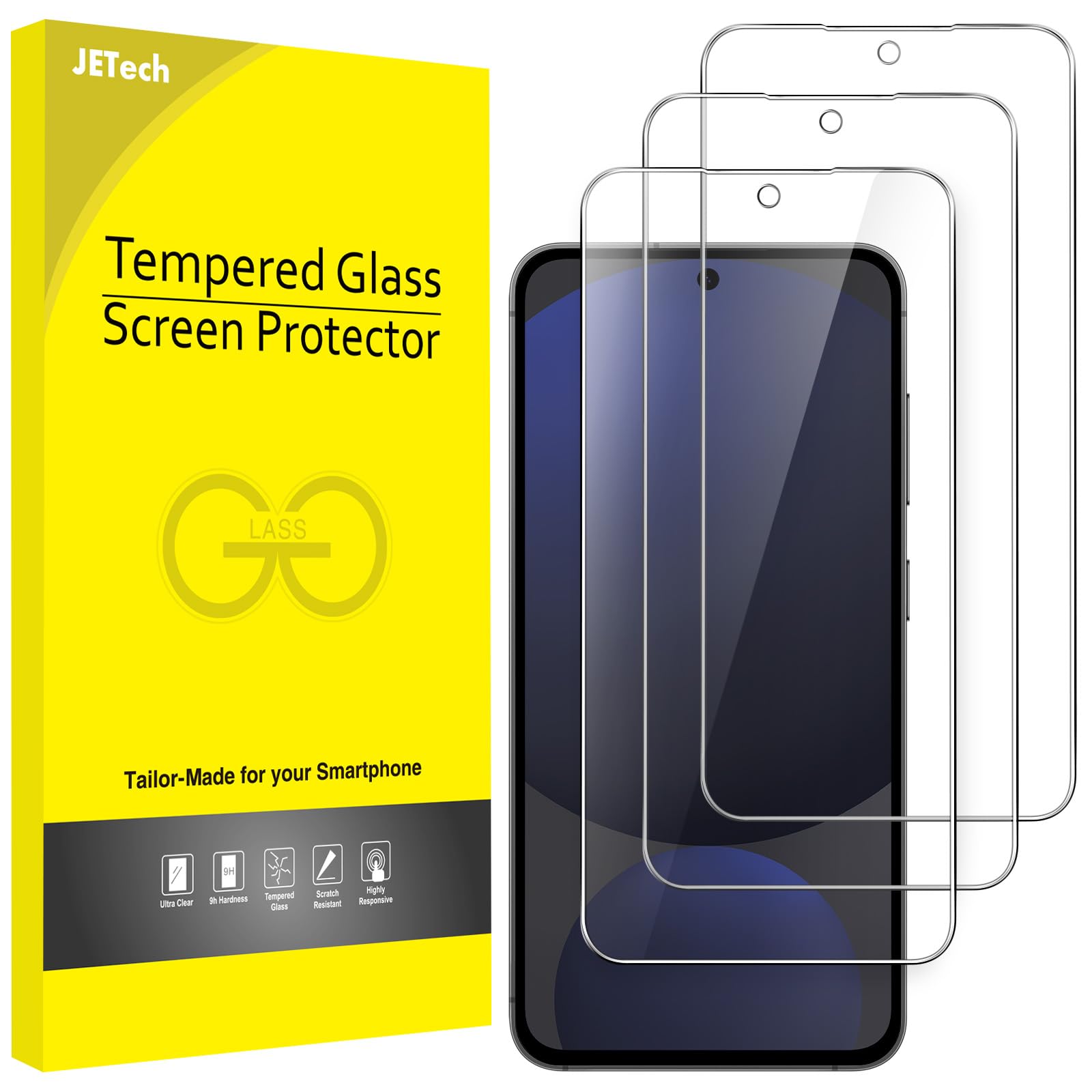JETech Screen Protector for Samsung Galaxy S24 FE, Tempered Glass Film, Fingerprint ID Compatible, HD Clear, 3-Pack