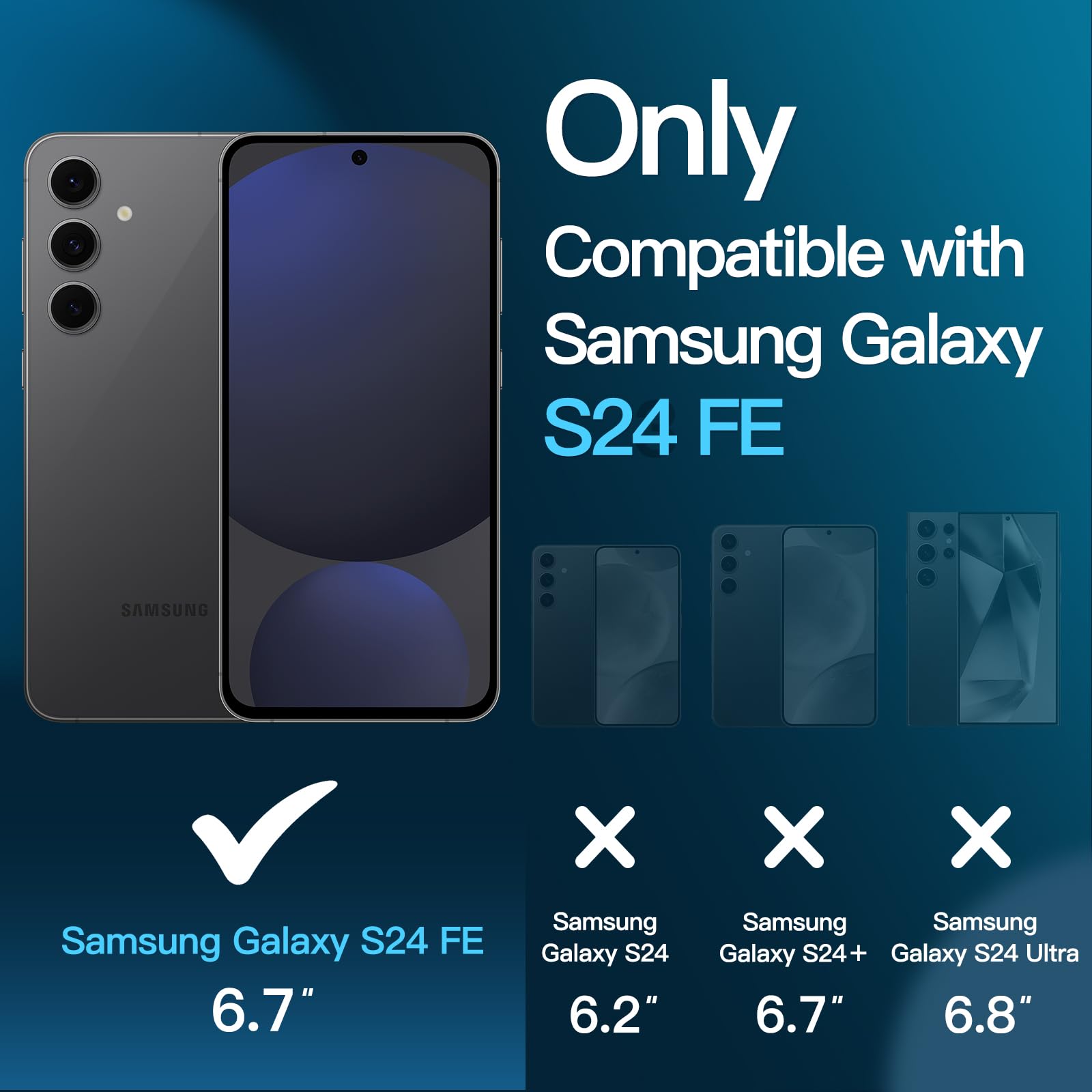 [Compatibility] Designed for Samsung Galaxy S24 FE for great protection (NOTE: Not for Samsung Galaxy S24 / S24 Plus / S24 Ultra / S23 FE). Designed with thoughtful 2.5D curved edges, compatible with most phone cases. Please kindly check your device model before purchasing