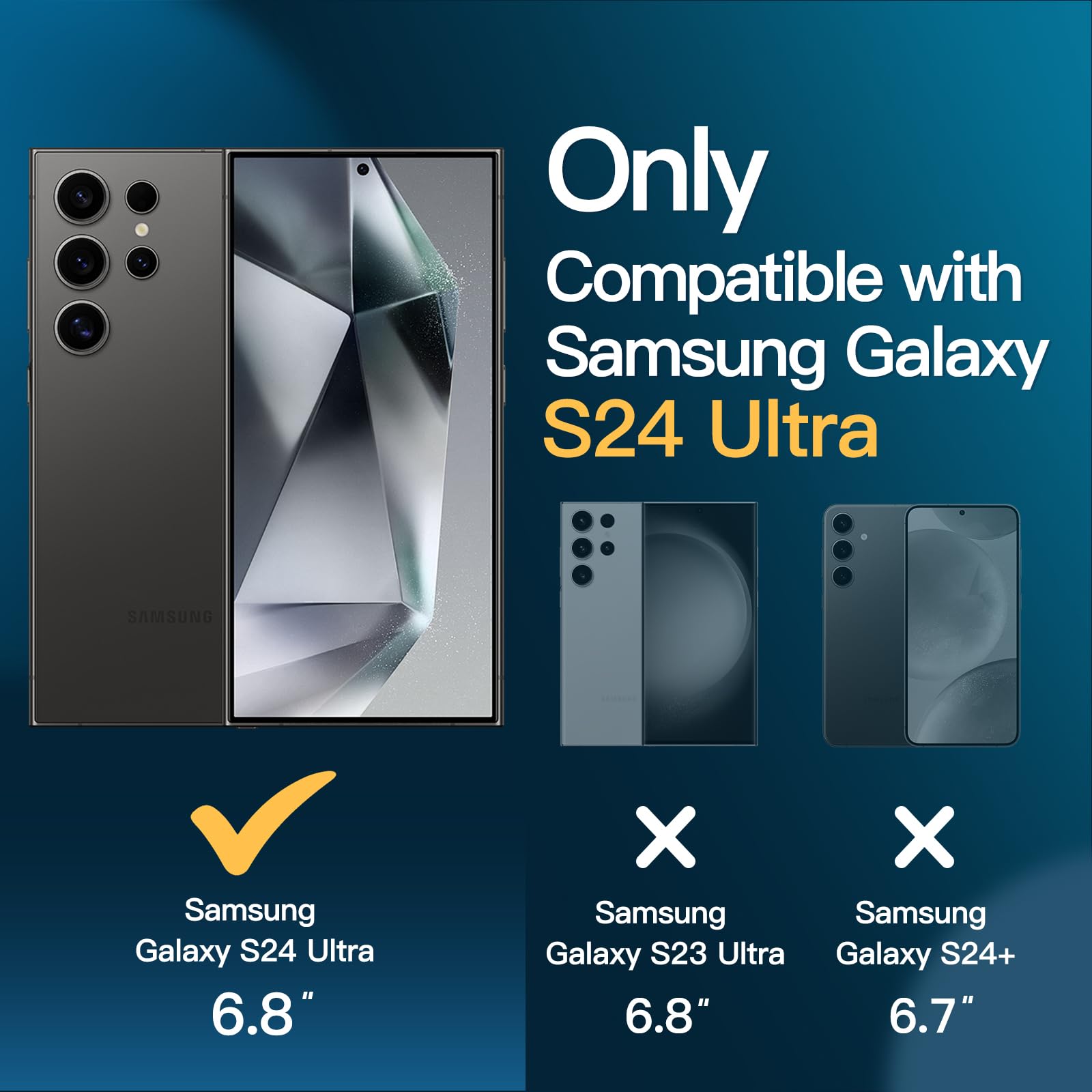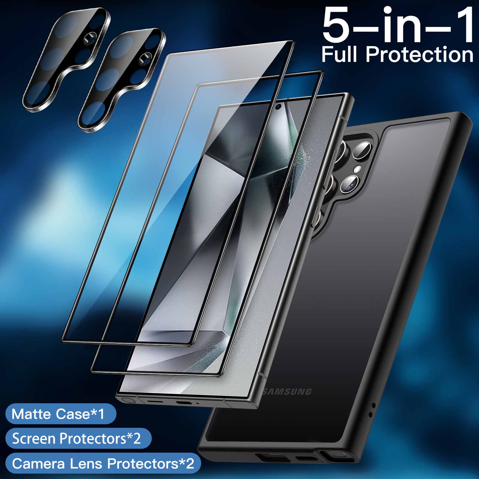 • [Compatibility] Exclusively designed for Samsung Galaxy S24 Ultra 5G. NOTE: Not for Galaxy S24 / S24 Plus. There are 2-pack screen protectors with an alignment tool, 2-pack camera lens protectors and a matte case, provides a 360 degree all-around protection for your phone