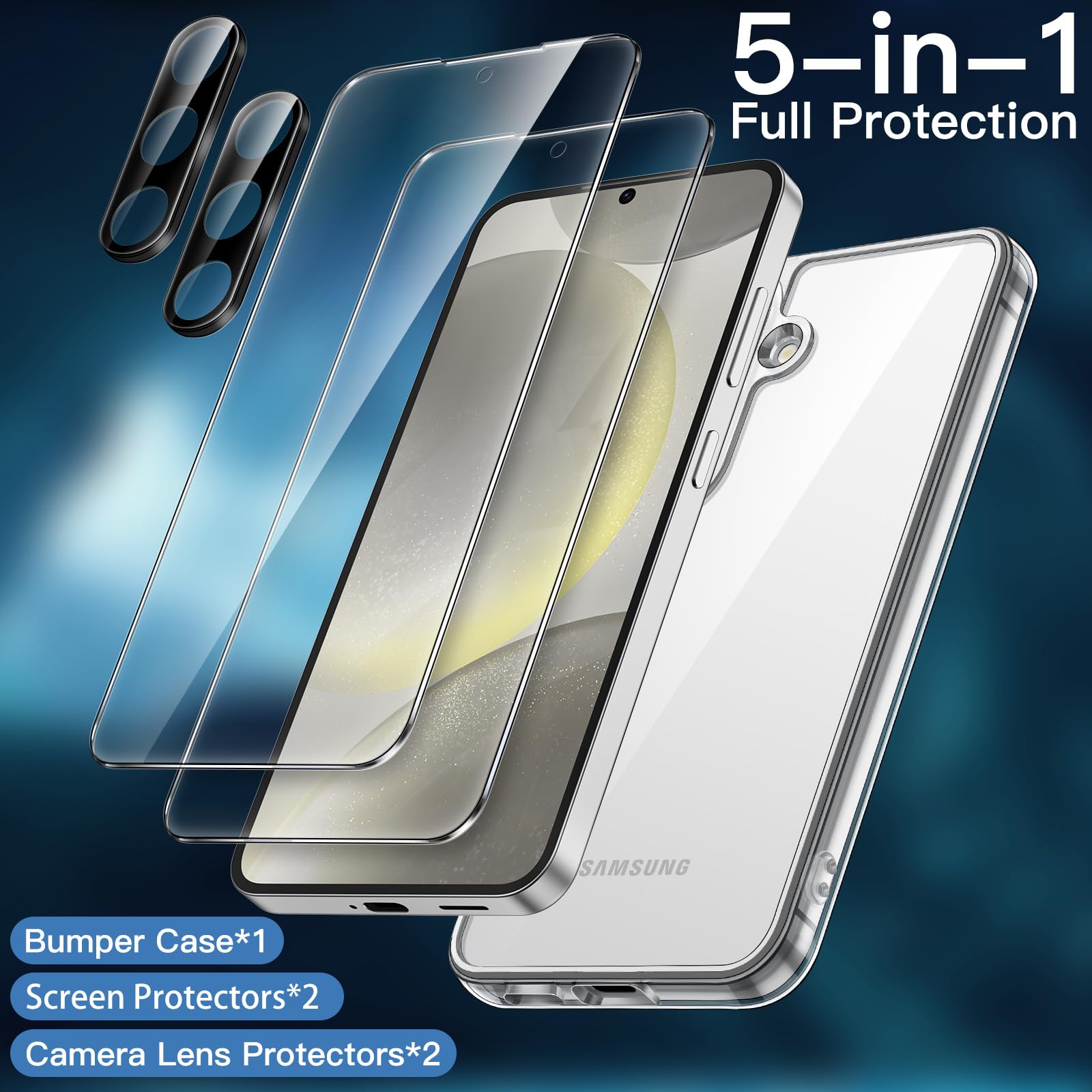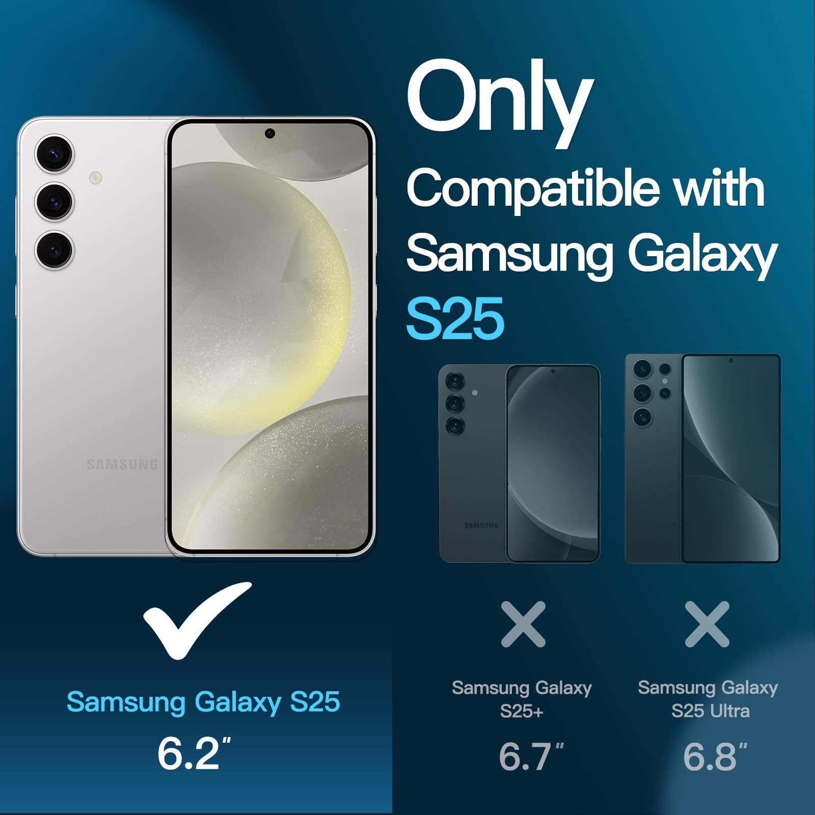 [Compatibility] Exclusively designed for Samsung Galaxy S25 5G. NOTE: Not for Samsung Galaxy S25 Plus / S25 Ultra. This protective bumper case, together with 2 pack screen protectors and 2 pack camera lens protectors, provides a 360 degree all-around protection for your phone