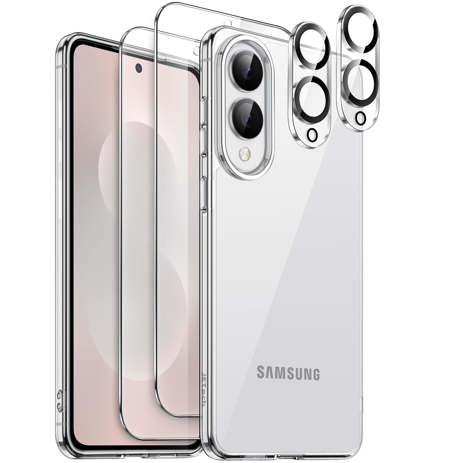 JETech 5 in 1 Case for Samsung Galaxy S25 Edge with 2-Pack Each Tempered Glass Screen Protector and Camera Lens Protector, Non-Yellowing Slim Shockproof Bumper Phone Cover