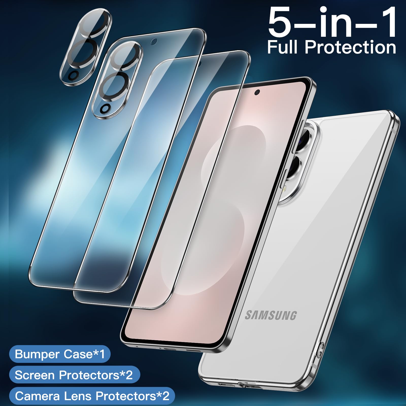 [Compatibility] Exclusively designed for Samsung Galaxy S25 Edge. NOTE: Not for Samsung Galaxy S25 / S25 Plus / S25 Ultra. This protective bumper case, together with 2 pack screen protectors and 2 pack camera lens protectors, provides a 360 degree all-around protection for your phone