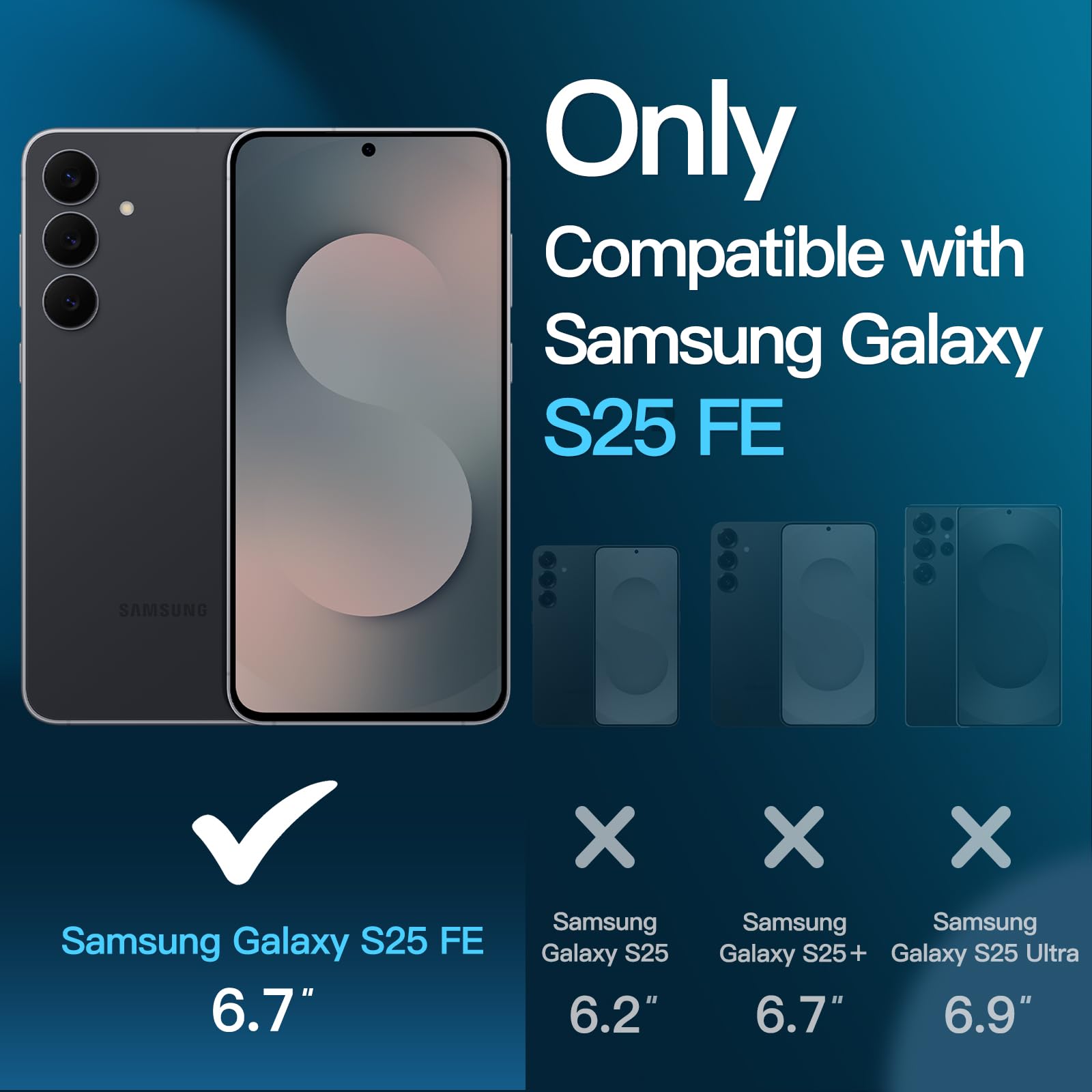 • [Easy Installation] Perfectly designed for Samsung Galaxy S25 FE 6.7-inch for great protection. NOTE: Not for Samsung Galaxy S24 FE / S25 / S25 Plus / S25 Edge. The included easy installation tool helps you to align and install the screen protector perfectly without leaving any bubbles
