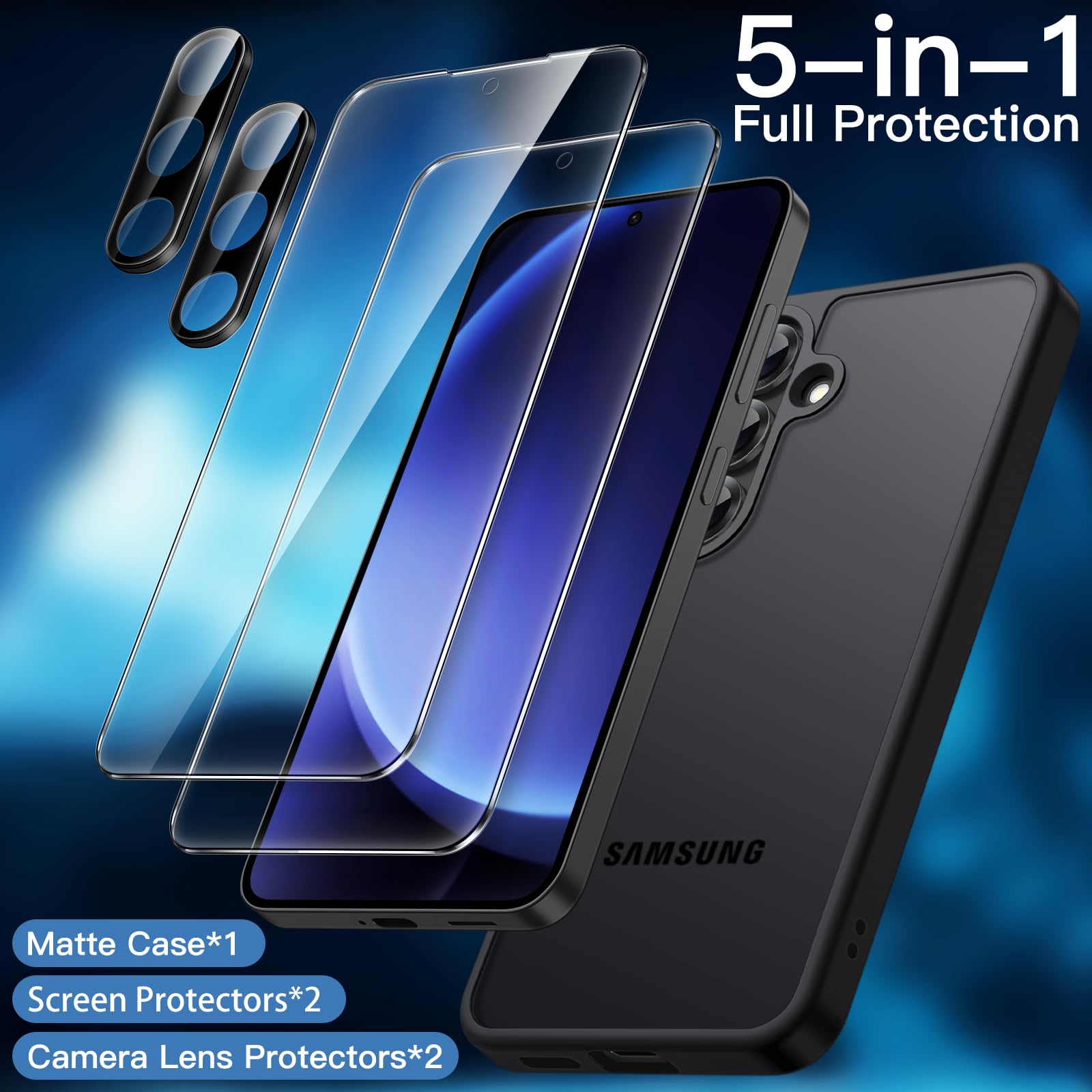 • [Compatibility] Exclusively designed for Samsung Galaxy S25 / S25 Plus 5G. NOTE: Not for Samsung Galaxy S25 / S25 Ultra. This protective matte case, together with 2 pack screen protectors and 2 pack camera lens protectors, provides a 360 degree all-around protection for your phone