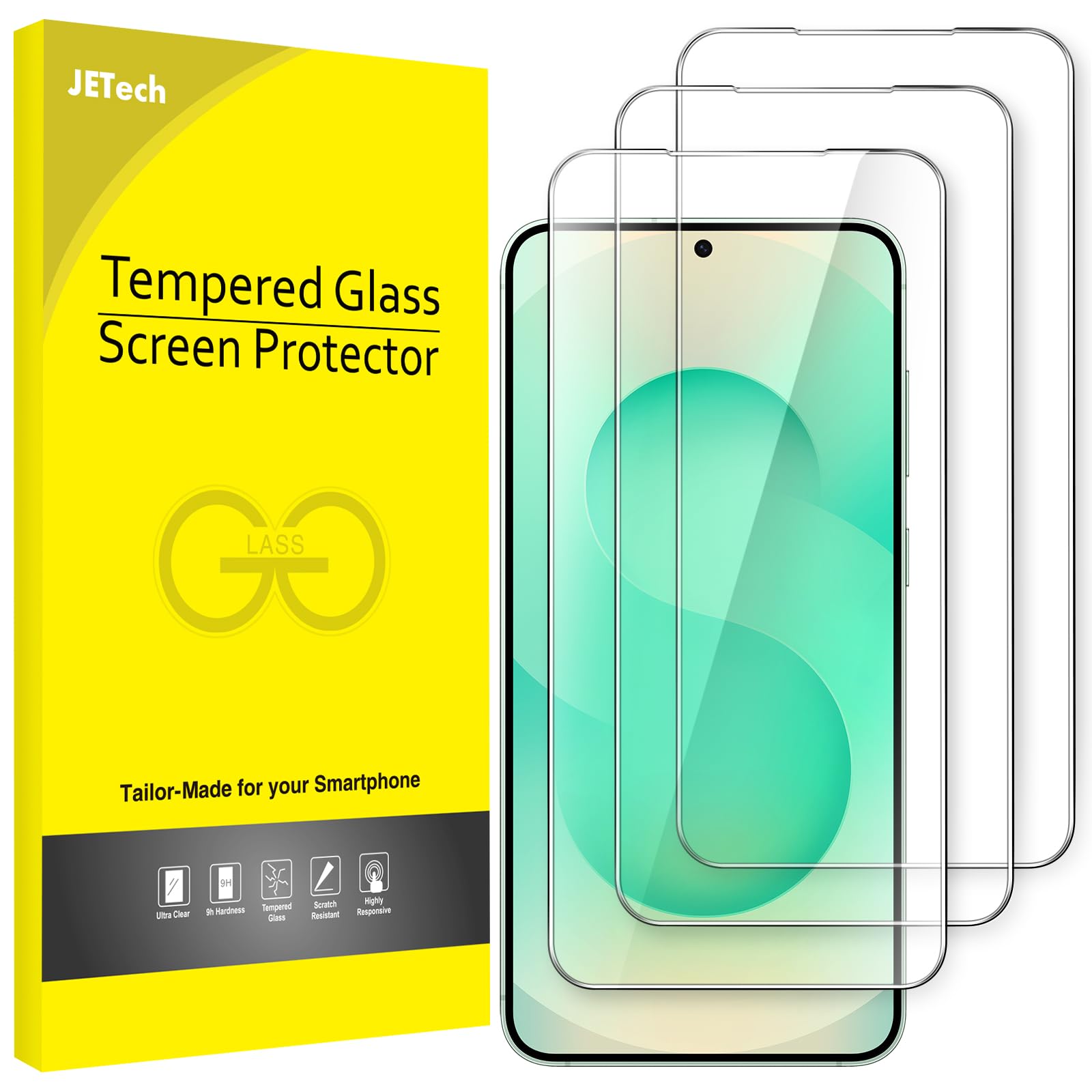 JETech Screen Protector for Samsung Galaxy S25 / S25 Plus 5G, Tempered Glass Film, Fingerprint ID Compatible, HD Clear, 3-Pack