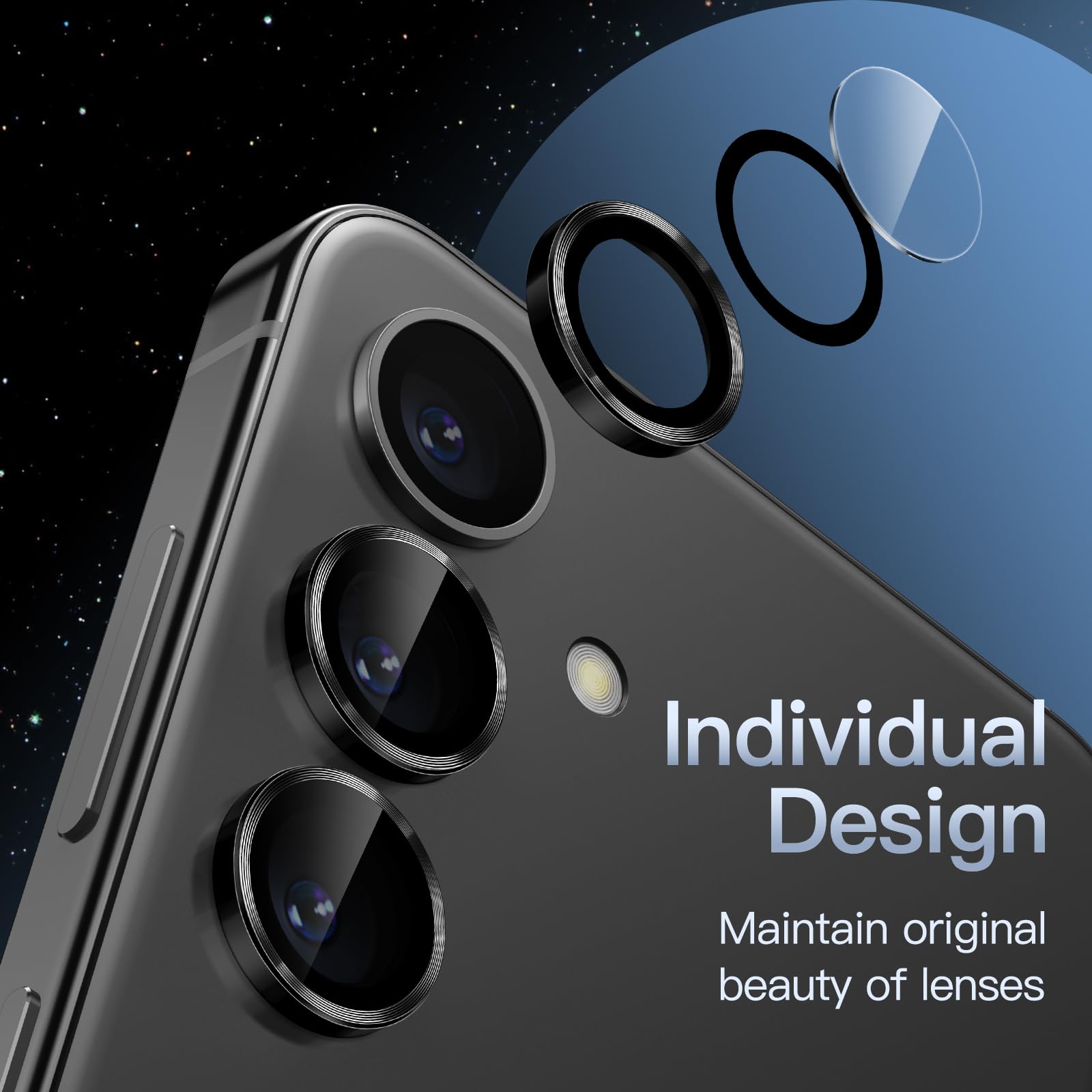 JETech Camera Lens Protector for Samsung Galaxy S25 5G, 9H Tempered Glass Metal Individual Ring Cover, Easy Installation Tray, HD Clear, 1 Set