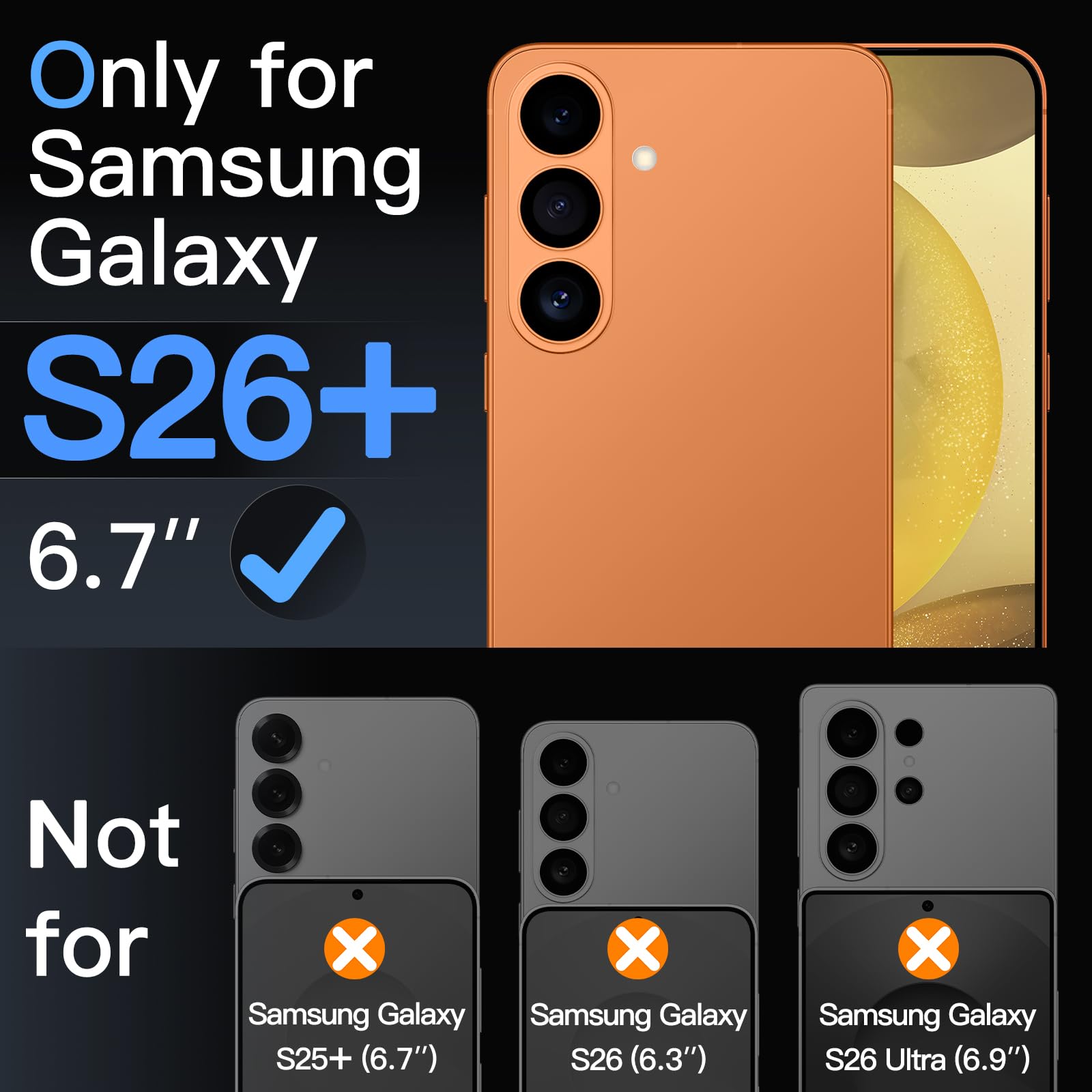 [Warm Tips] Only designed for Samsung Galaxy S26 Plus / S26 . NOTE: Not for Samsung Galaxy S25 Plus / S25 / S26 / S26 Ultra. Please watch the installation video before applying the screen protector