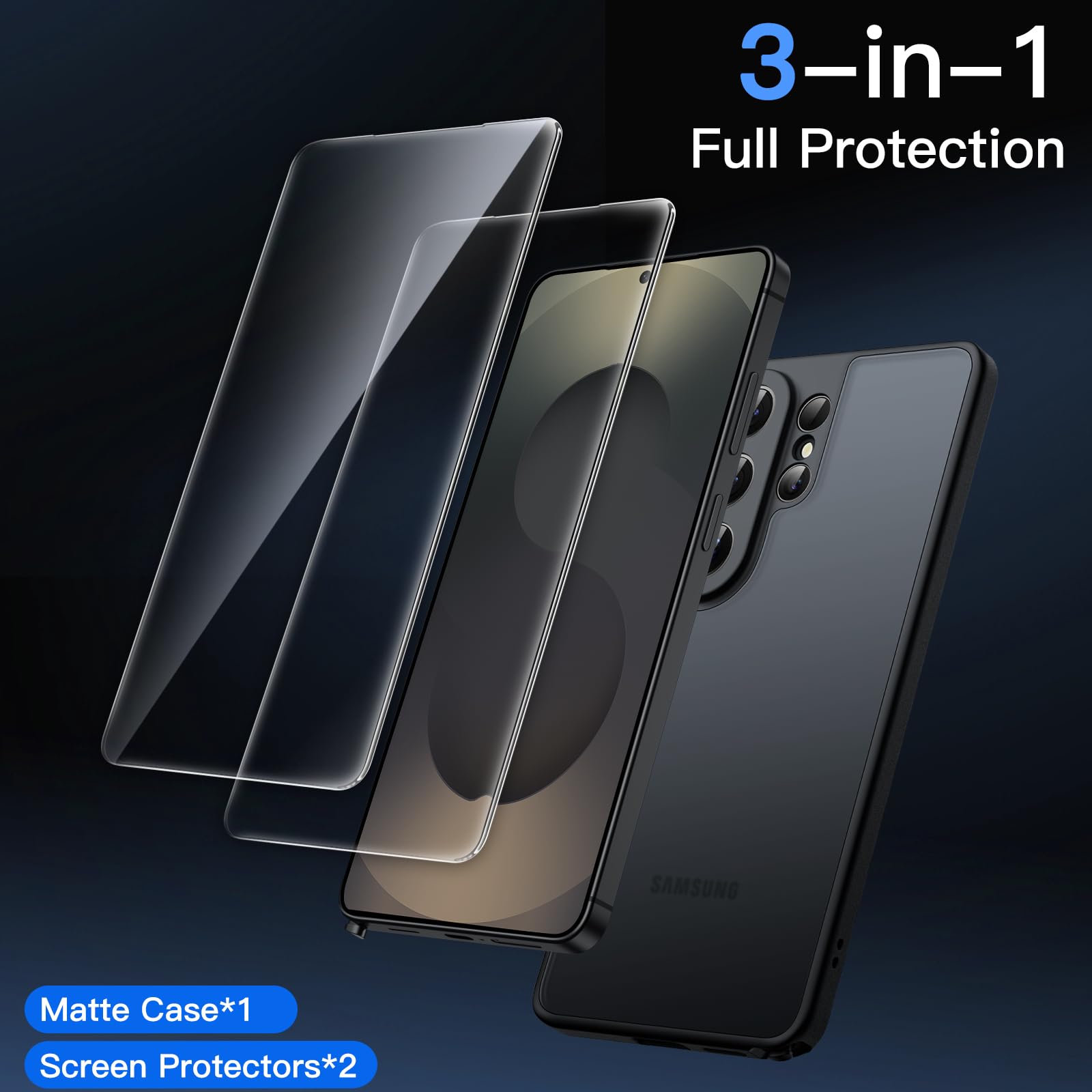 JETech 3 in 1 Matte Case for Samsung Galaxy S26 Ultra with 2-Pack Tempered Glass Screen Protector, Translucent Shockproof Phone Cover with Camera Lens Full Protection