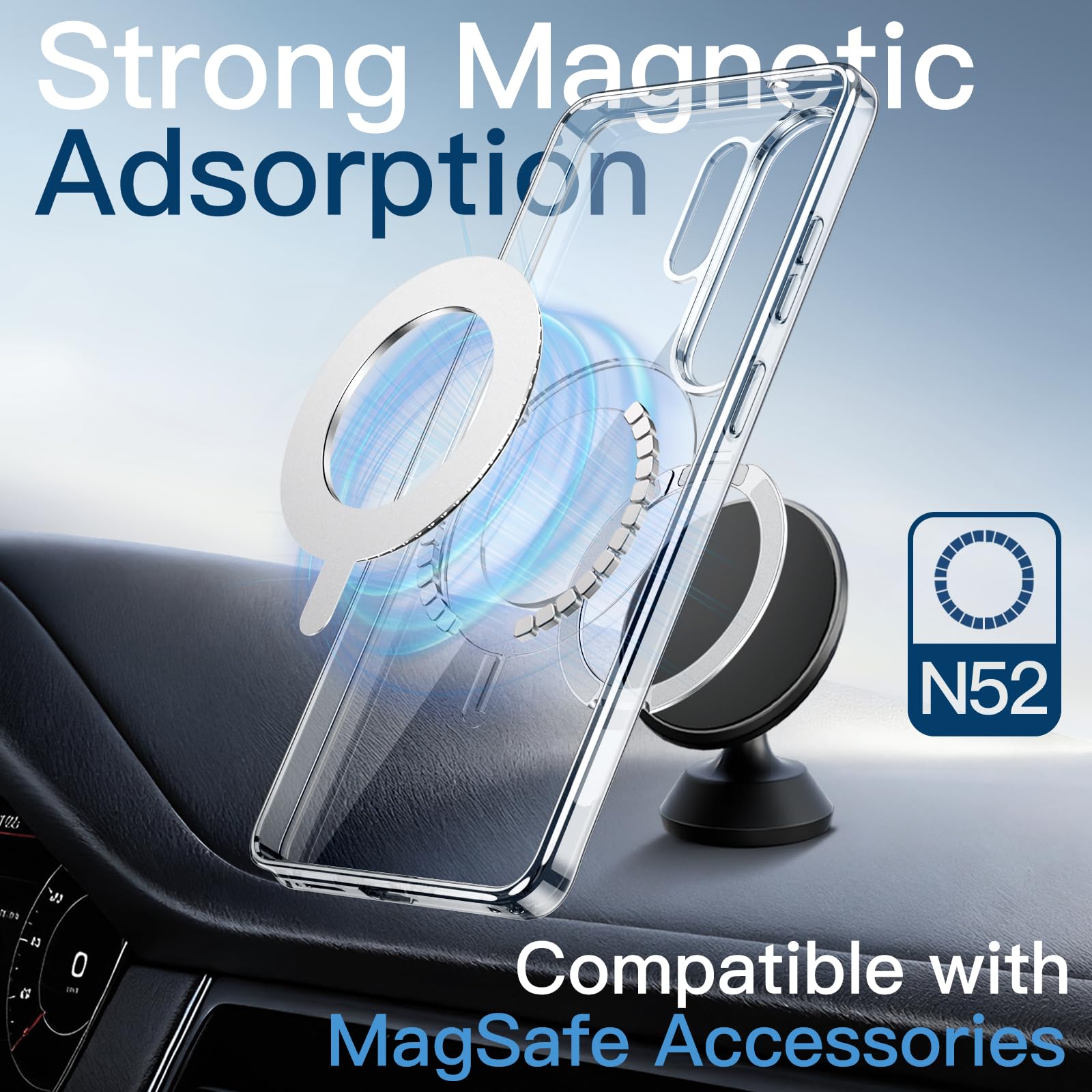 [Strong Magnetic Attachment] Once snap on, never sliding. Compatible with MagSafe chargers and accessories including magnetic car mounts, desktop stands and ring holders. Moreover, we combined the strong magnetic technology with a foldable kickstand, turning it into a hidden magnetic stand that folds back into the groove when not in use
