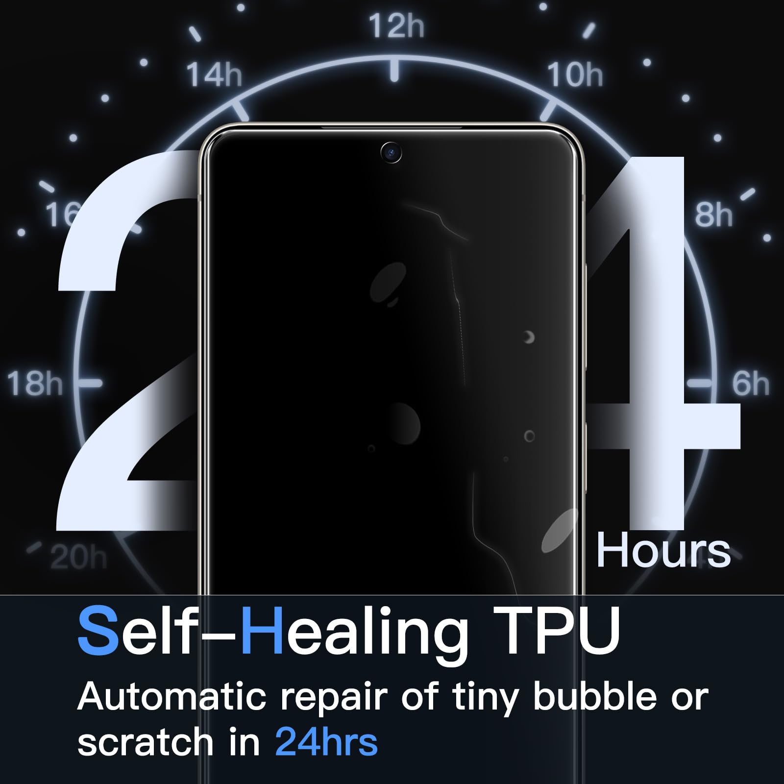 [Flexible TPU Film] Built with self-healing TPU material for maximum protection against scratches. If small bubbles or light scratches appear, they’ll smooth out and automatically disappear within 24 hours