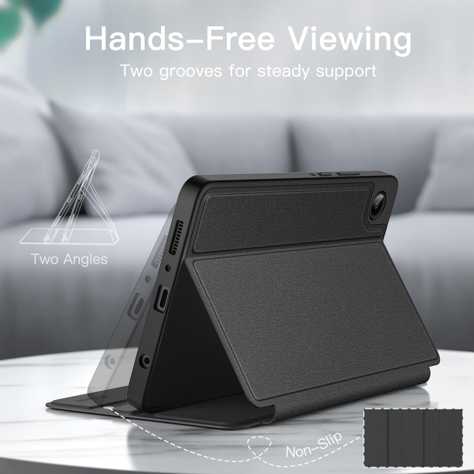 • [Multi Standing Positions] The two anti-slip grooves of the front cover can prop up your device in different viewing angles