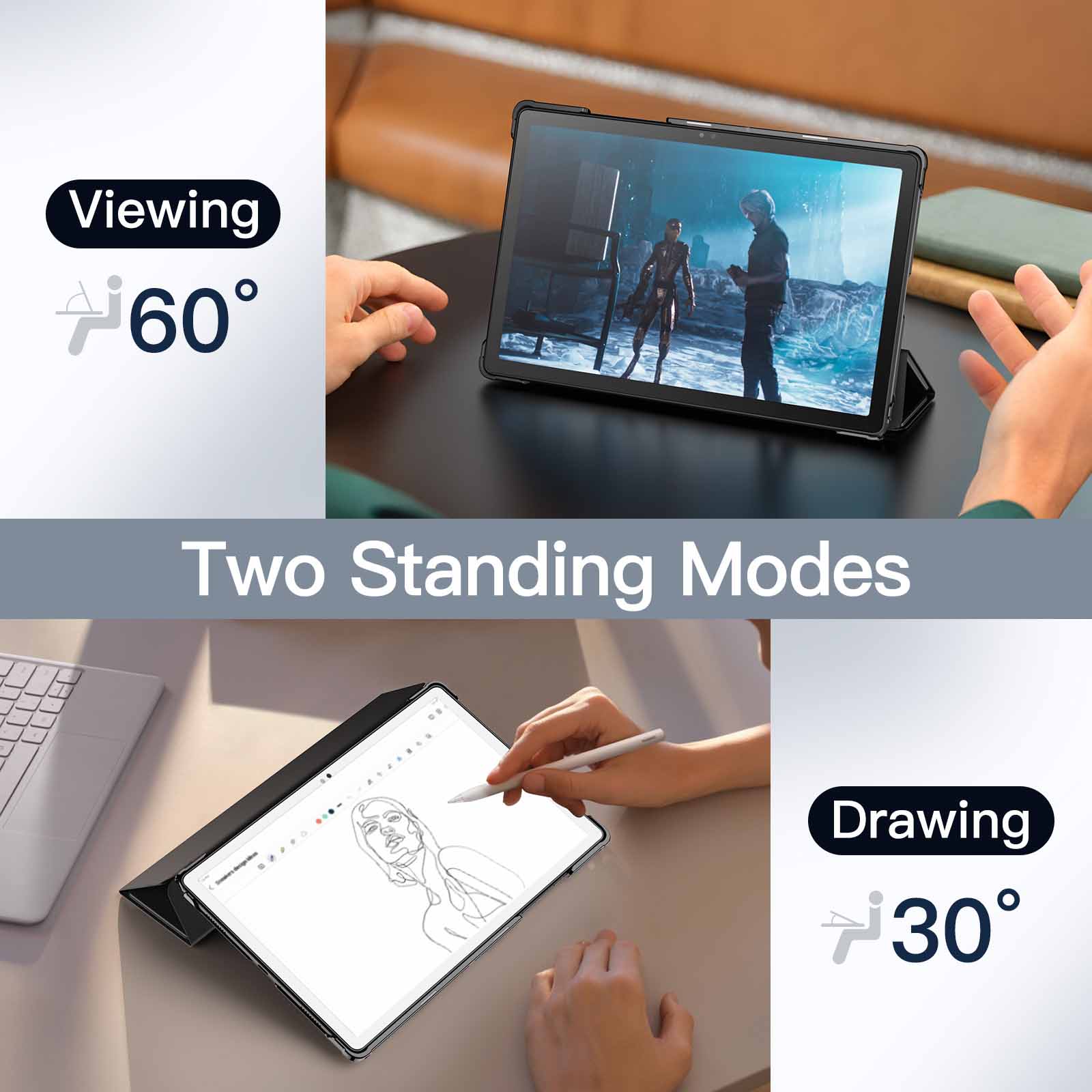 [Tri-Fold Stand Cover] The front cover can be folded into a stand to support your tablet in two different positions for viewing and typing