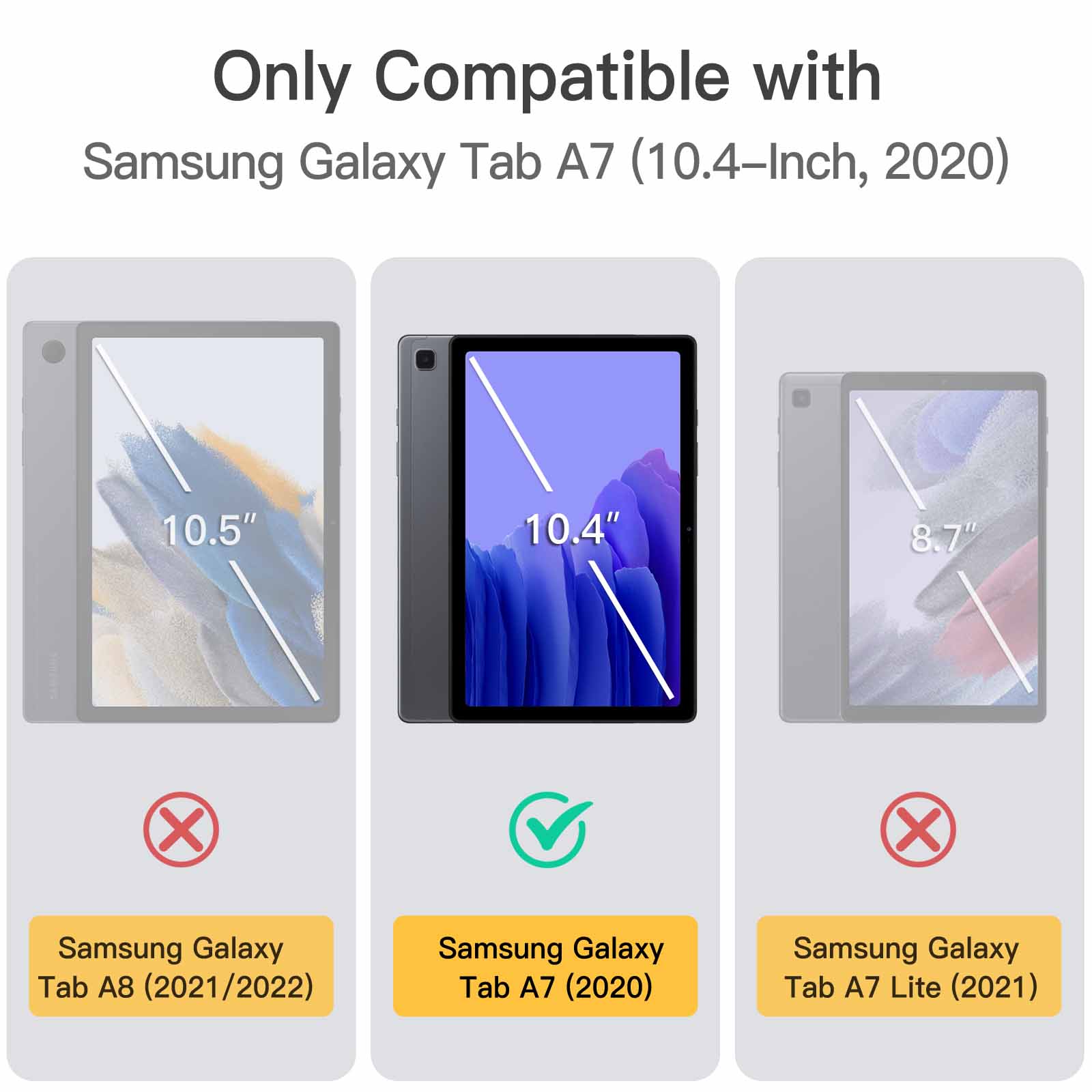 [Wide Compatibility] Designed for Samsung Galaxy Tab A7 10.4-Inch 2020 (SM-T500 / T505 / T507). Please double check the model number before purchasing