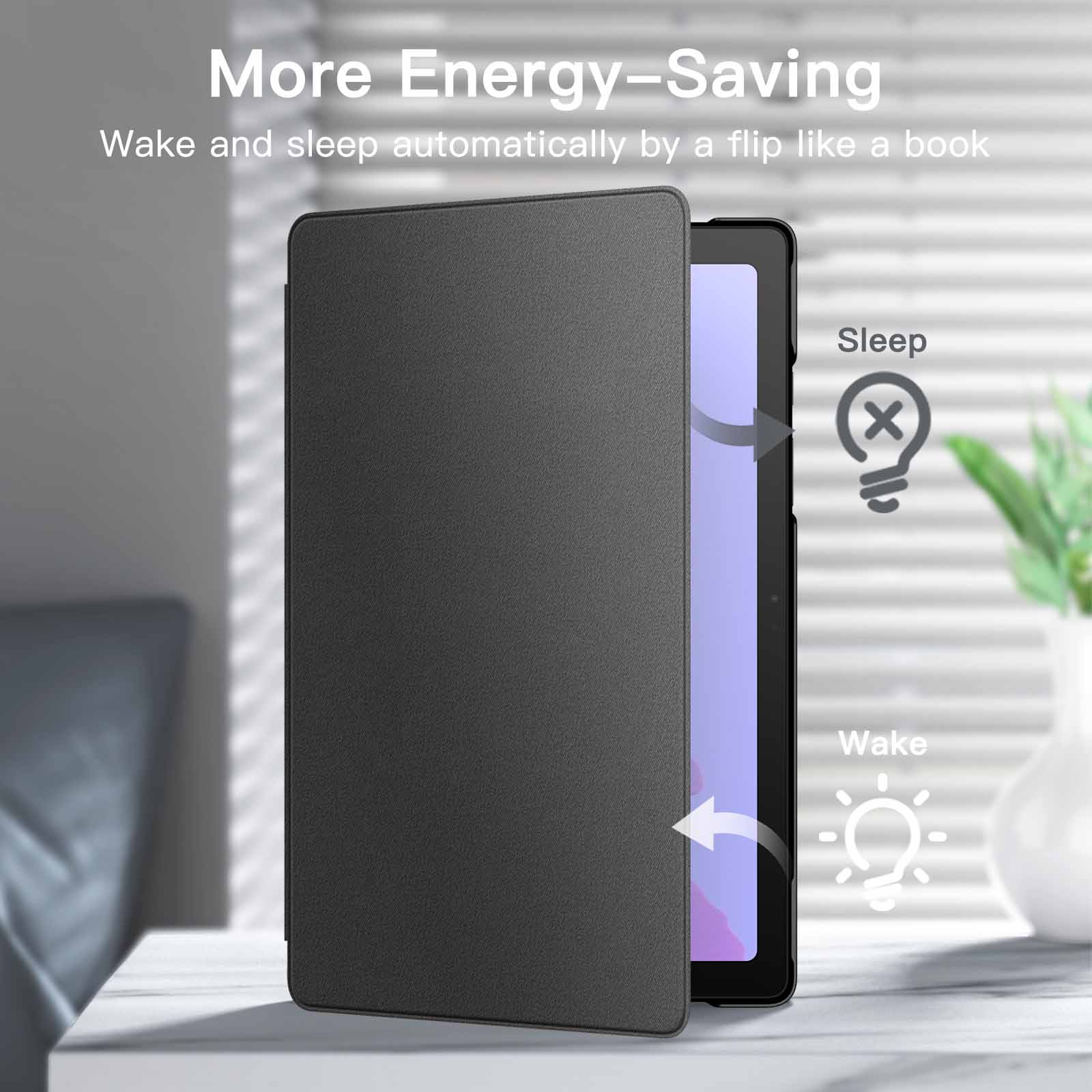 [Auto Wake/Sleep] Built-in strong magnet automatically wakes up your tablet and puts it to sleep just by a flip like a book. In addition, allow easy open and secure close