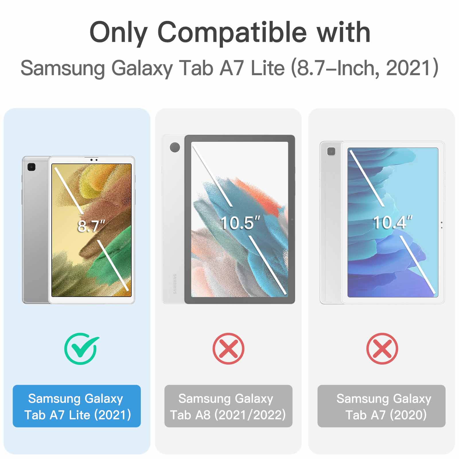 • [Compatibility] Perfectly designed for Samsung Galaxy Tab A7 Lite 8.7-Inch 2021. Fit models: SM-T227 / SM-T225 / SM-T220