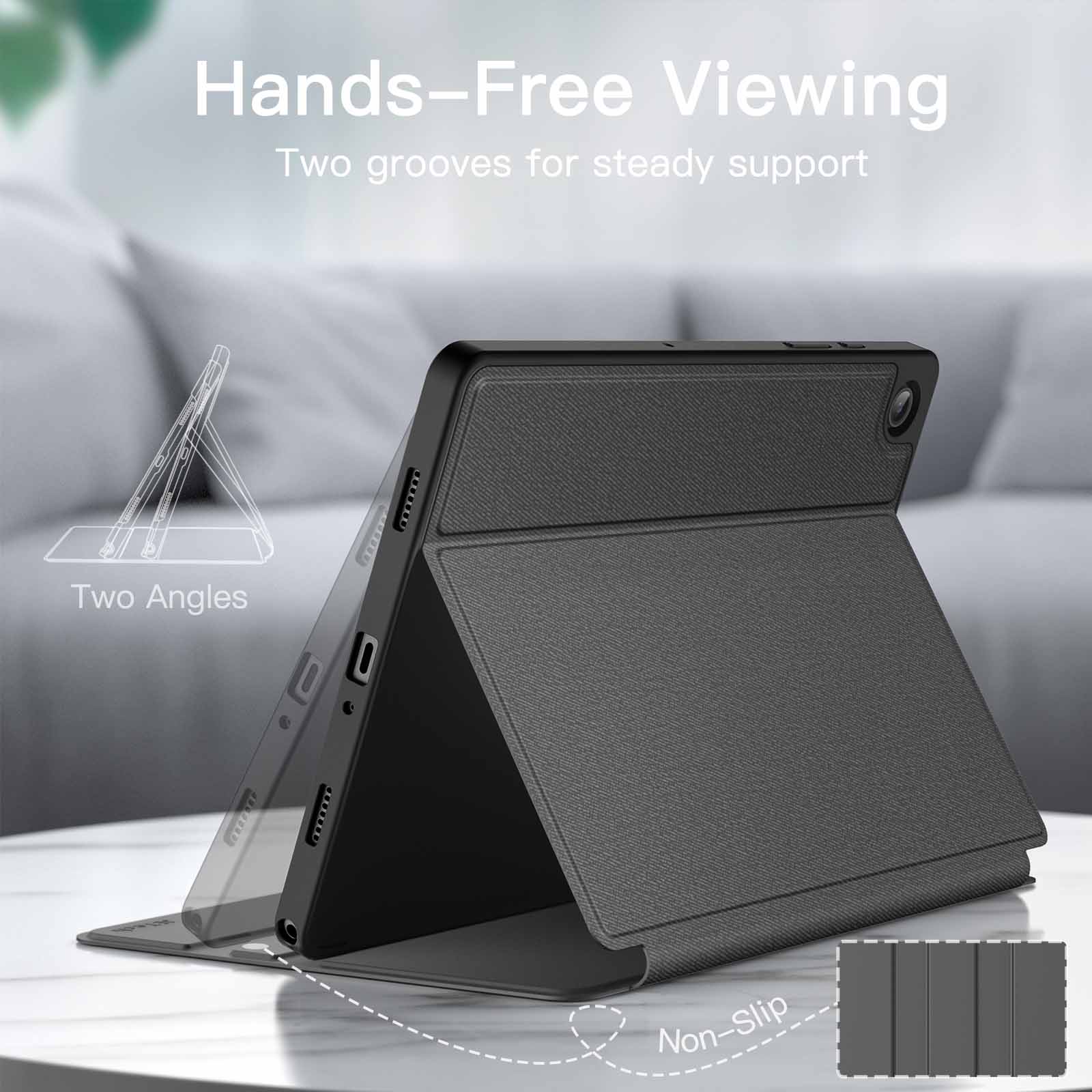 [Multi Standing Positions] The two anti-slip grooves of the front cover can prop up your device in different viewing angles