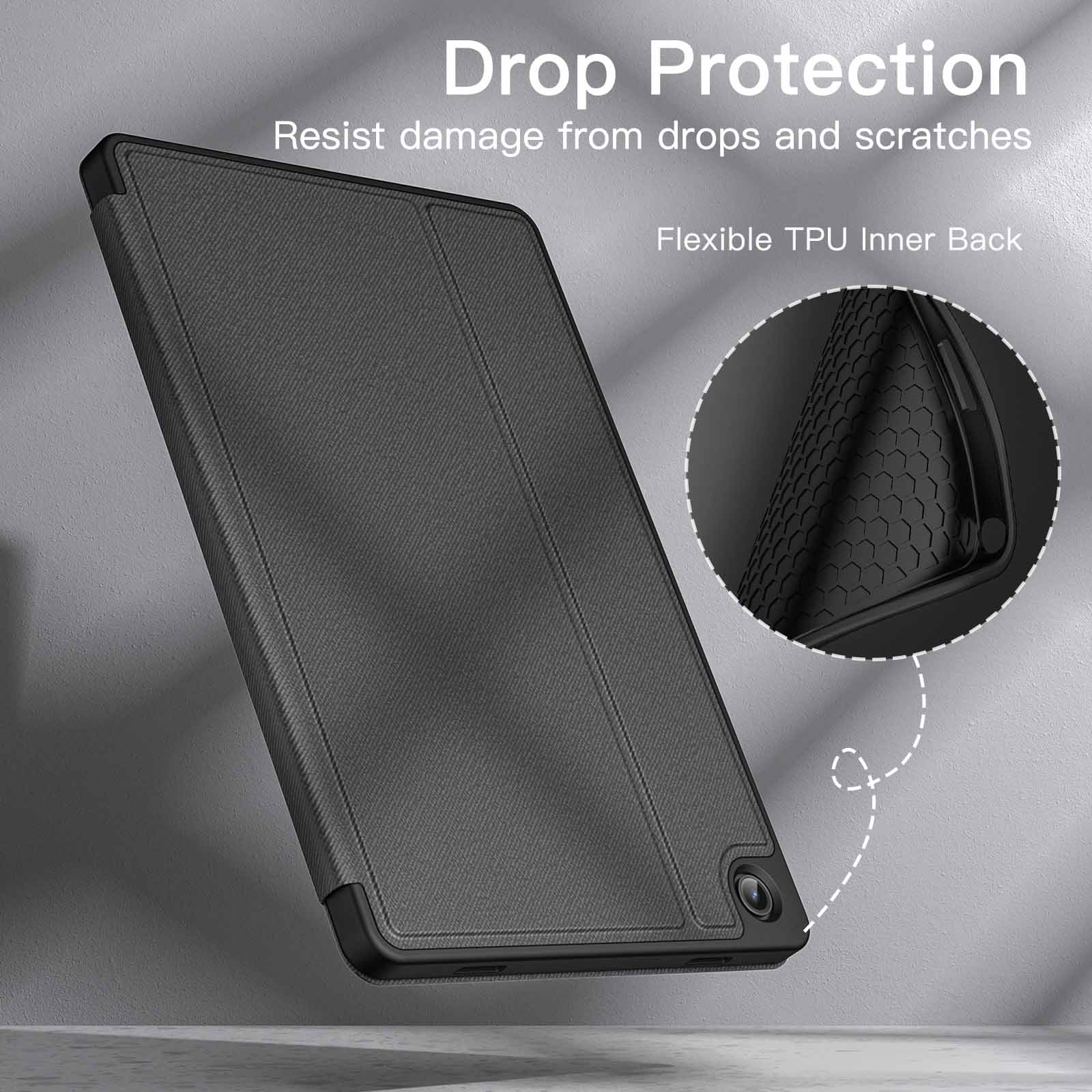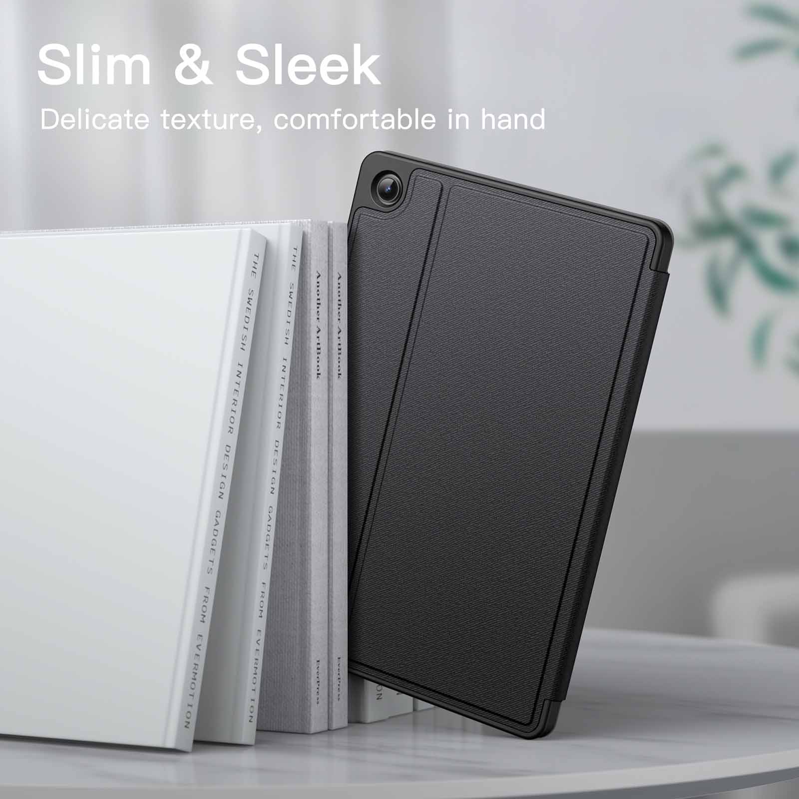 [Auto Wake/Sleep] Built-in strong magnet automatically wakes up your tablet and puts it to sleep just by a flip like a book. In addition, allow easy open and secure close