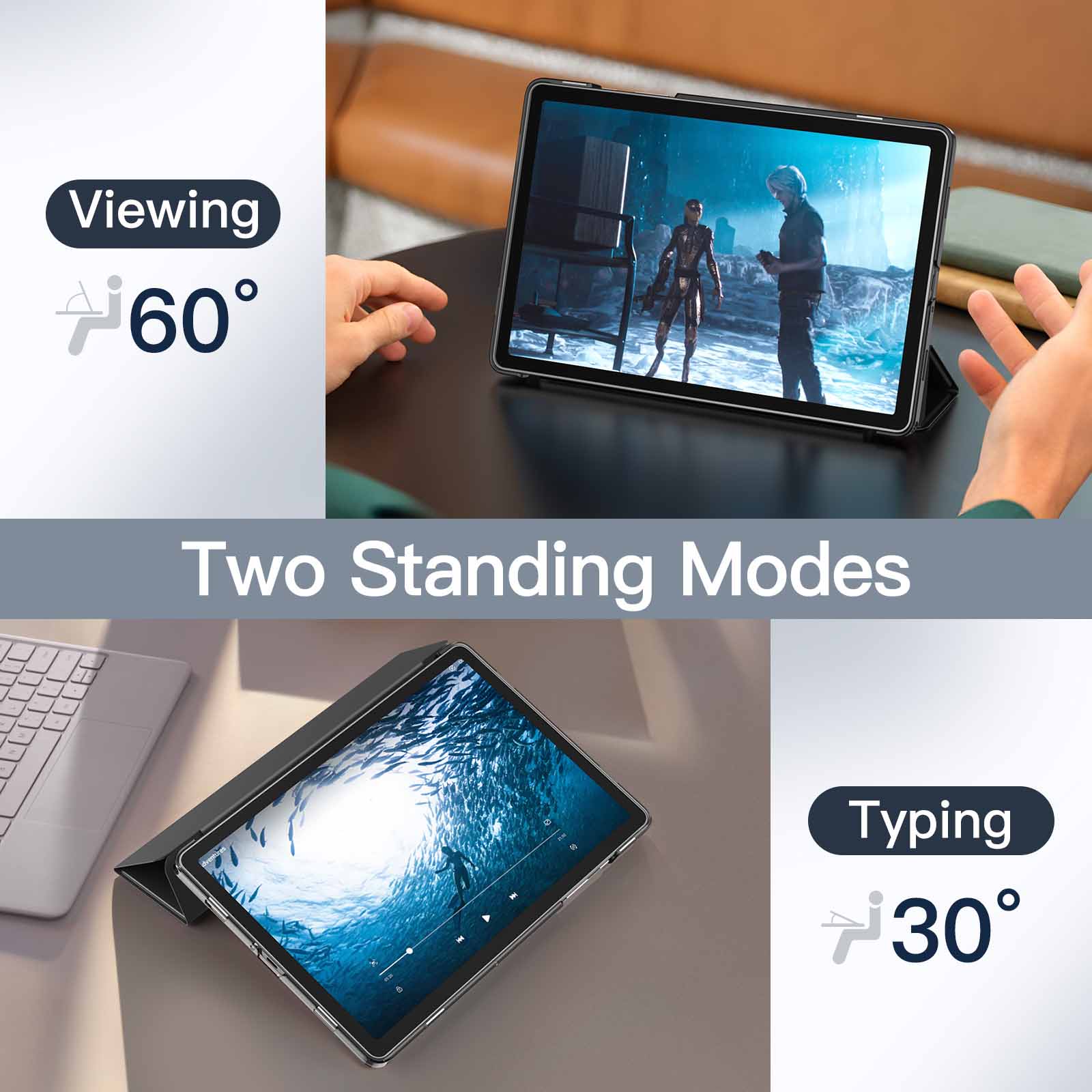 [Tri-Fold Stand Cover] The front cover can be folded into a stand to support your tablet in two different positions for viewing and typing