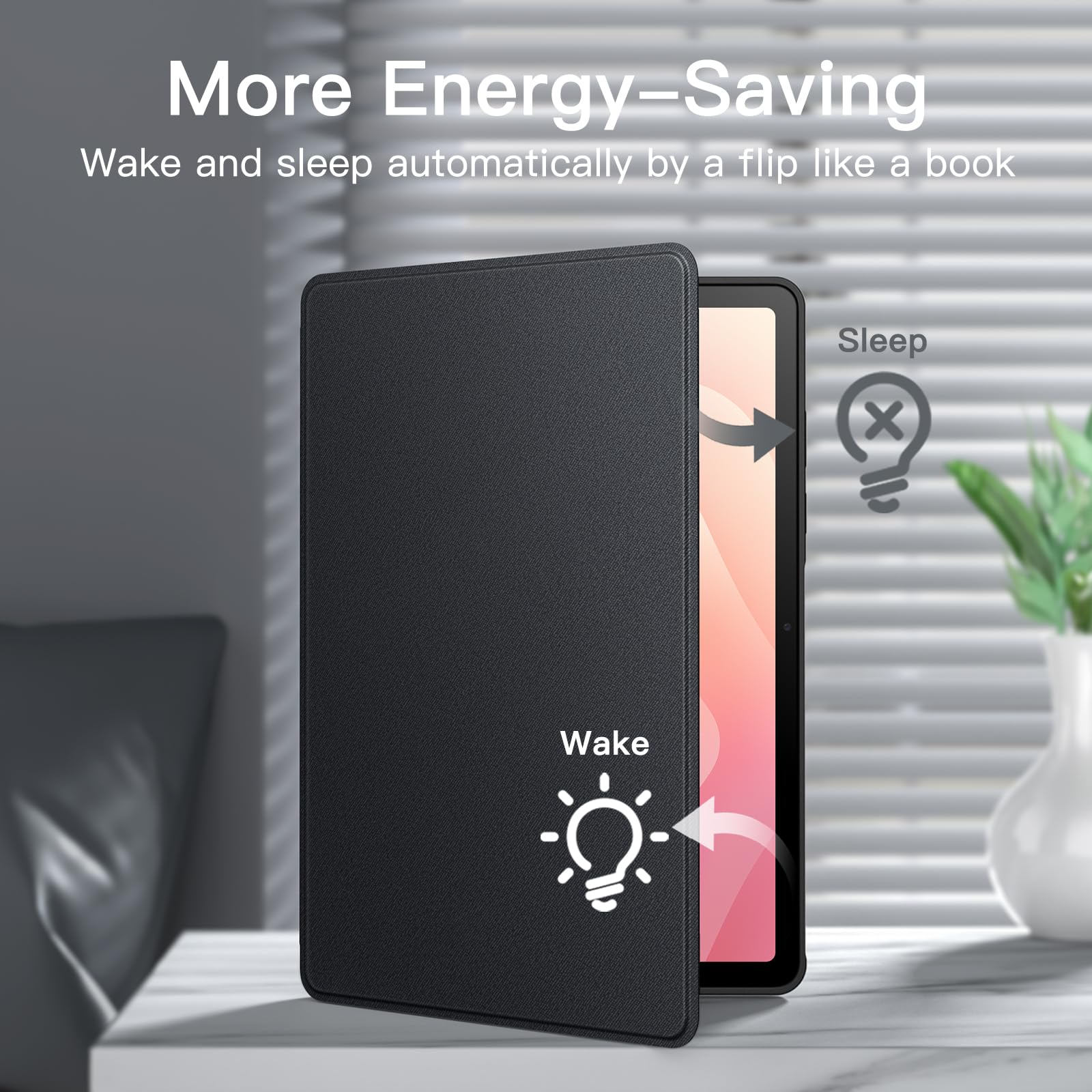 [Auto Wake/Sleep] Built-in strong magnets automatically wake up your tablet or put it to sleep just by a flip like a book, providing both convenience and energy efficiency