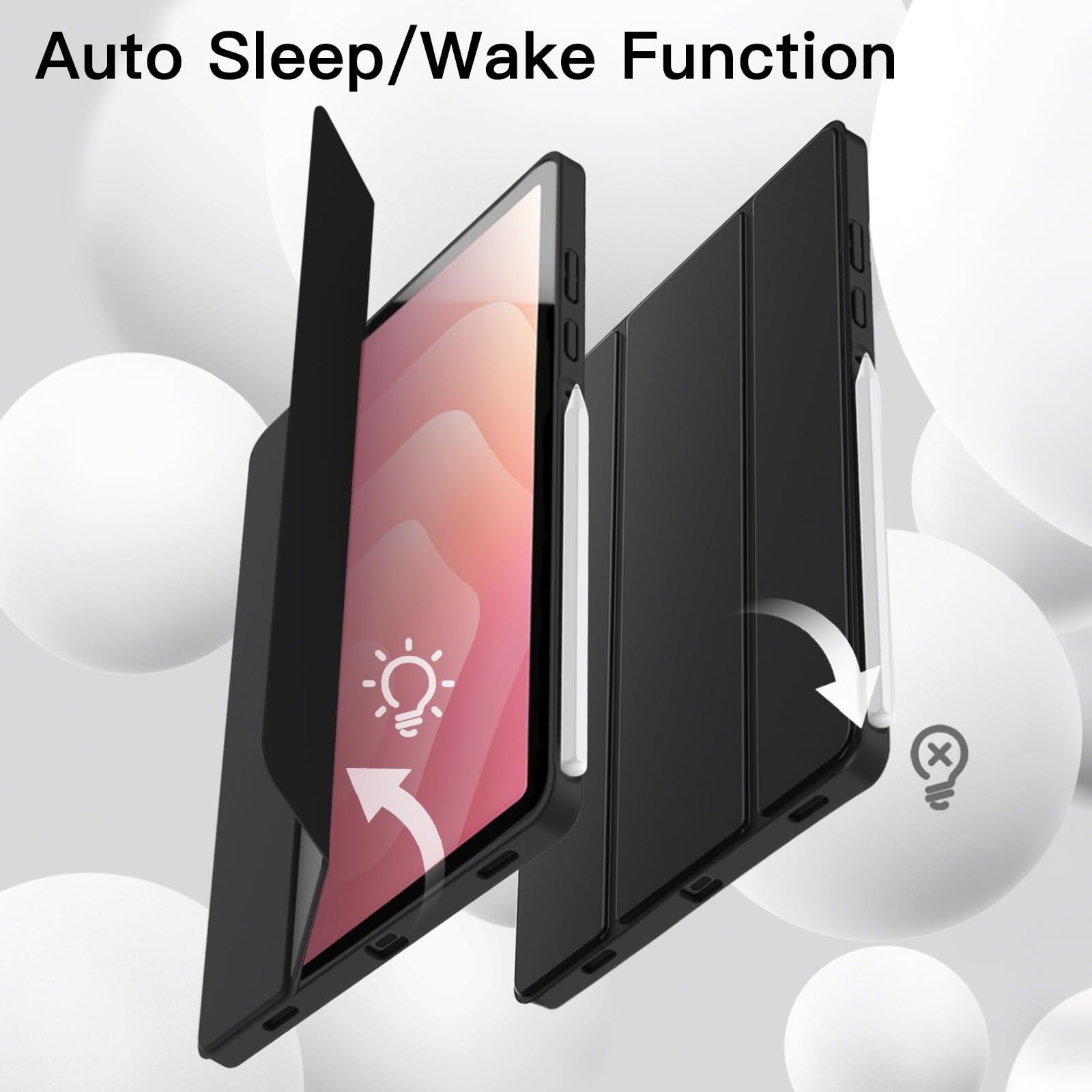 [Auto Wake/Sleep] The built-in magnets in the protective case enable an auto sleep/wake feature for energy savings, allowing instant wake when opened and effortless sleep when closed