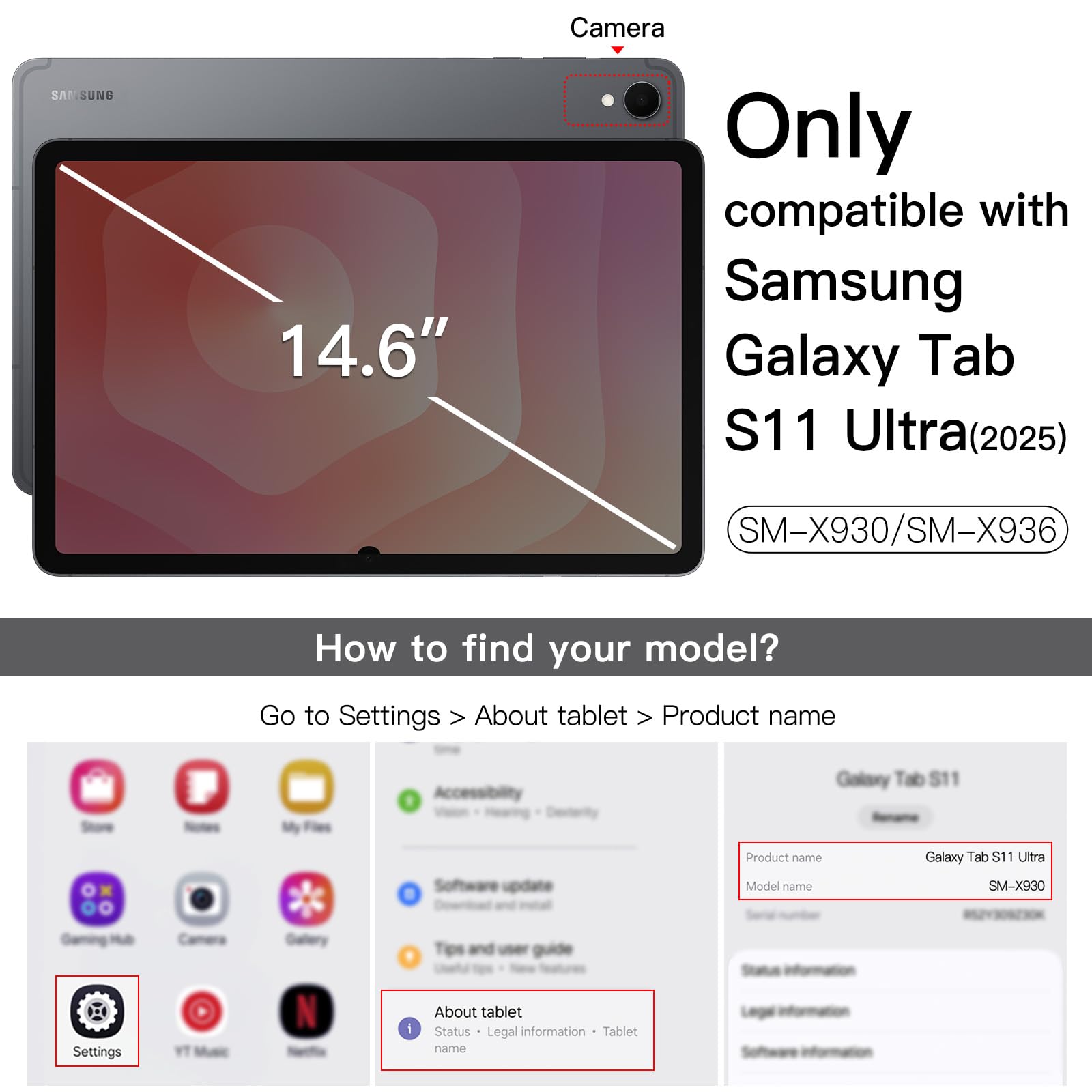 [Compatibility] Designed for Samsung Galaxy Tab S11 Ultra. Fit Models: SM-X930/SM-X936. NOTE: Not for Samsung Galaxy Tab S10 Ultra. Please Go to Settings > About tablet to check your device model before purchasing