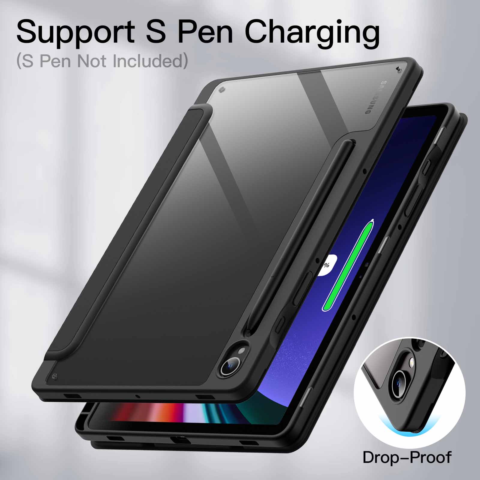 [Designs for S Pen] You can pair and charge your S Pen magnetically through the back slot. Also there is a built-in pen holder for securely store and grab your S Pen easily (Note: S Pen Not Included)