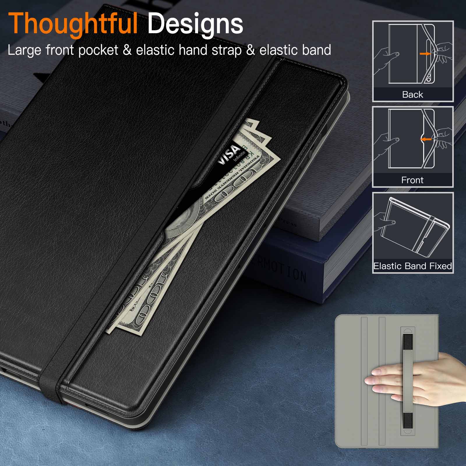 • [Multi-Functional] A large front pocket to store cards, cash, notes and so on. Also come with an exterior elastic strap to fix your tablet tightly to the case, and the adjustable inner hand strap enhances the grip of your device