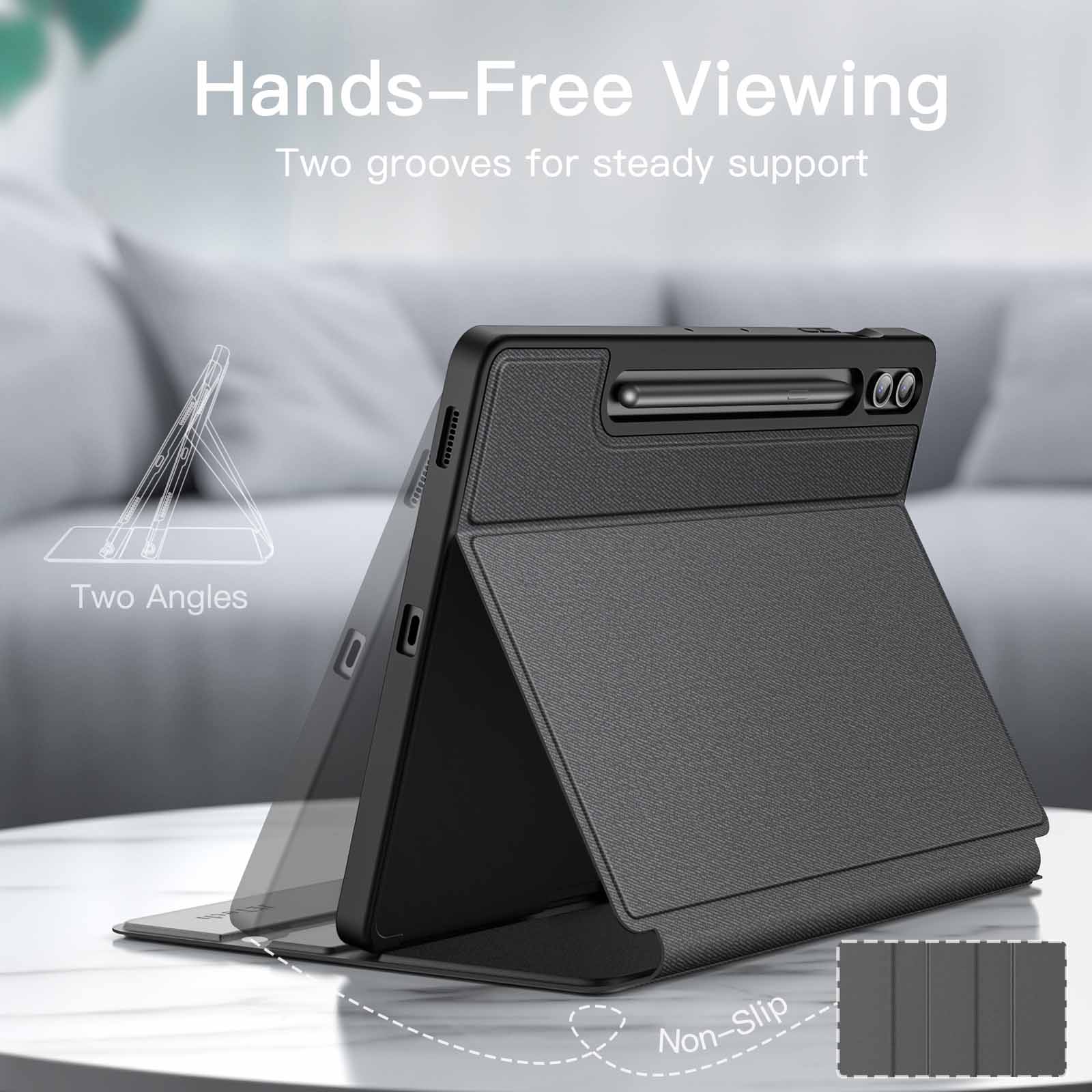 [Multi Standing Positions] The two anti-slip grooves of the front cover can prop up your device in different viewing angles. Moreover, wider cutouts make it easier to use the camera, speaker, buttons and other features