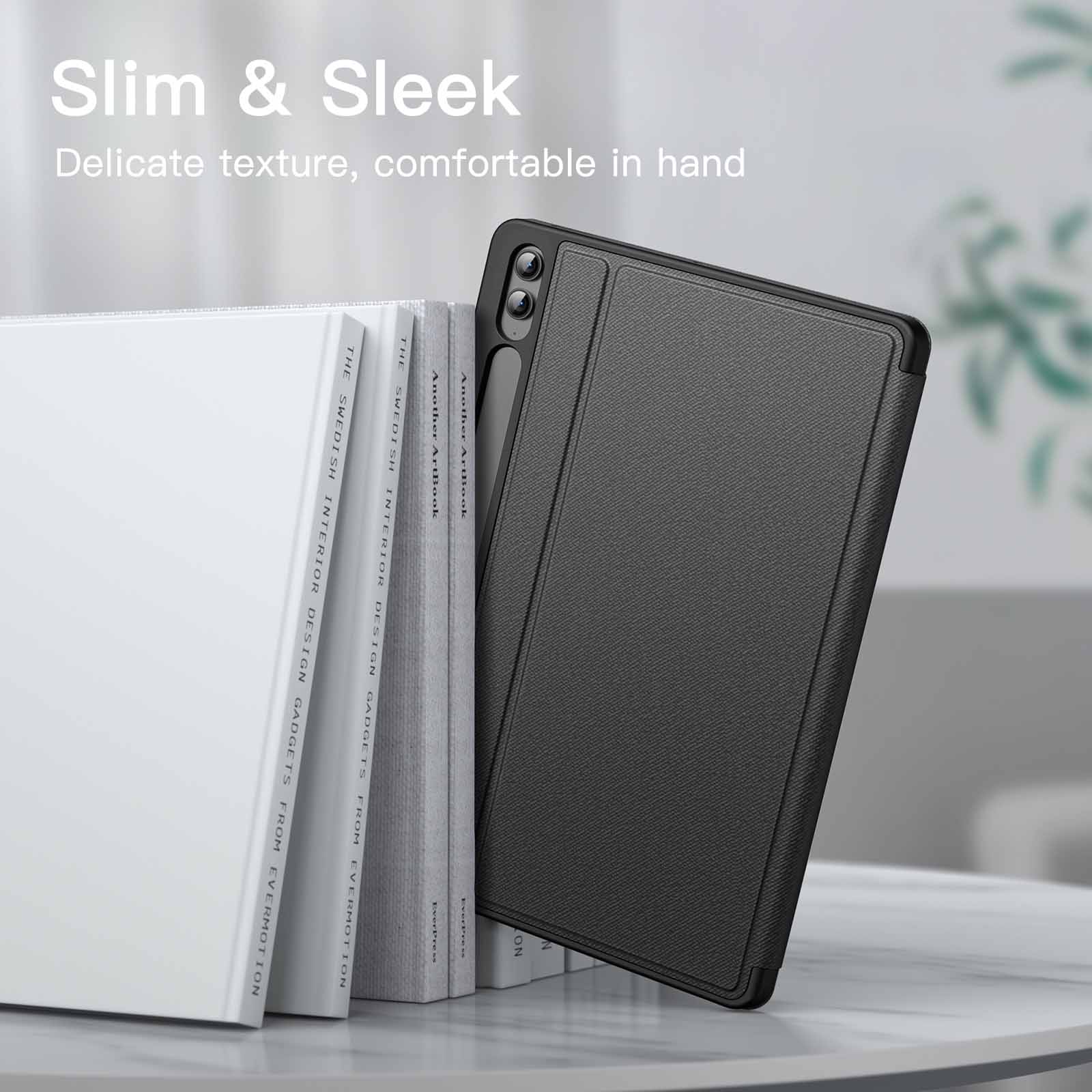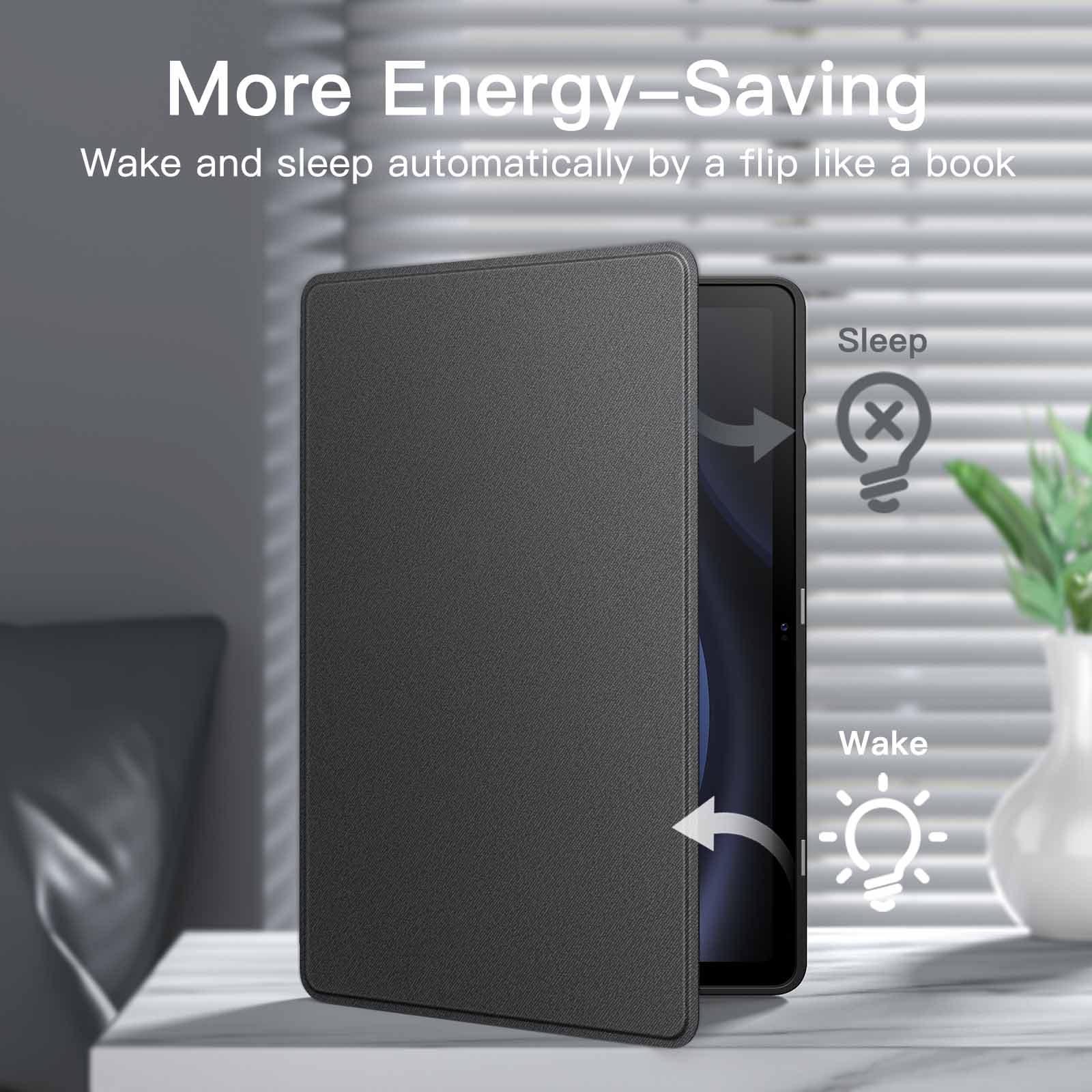 [Auto Wake/Sleep] Built-in strong magnet automatically wakes up your tablet and puts it to sleep just by a flip like a book. In addition, allow easy open and secure close