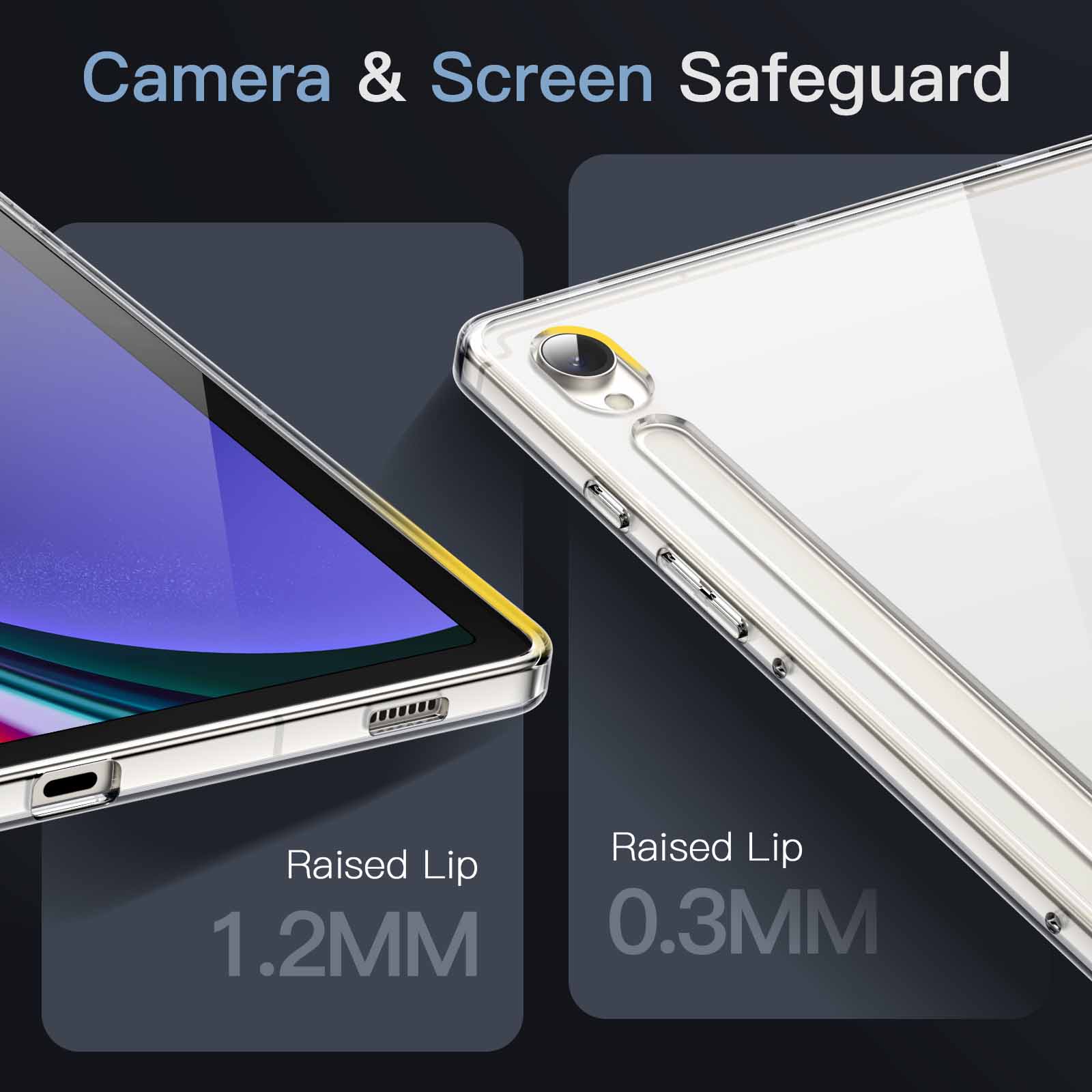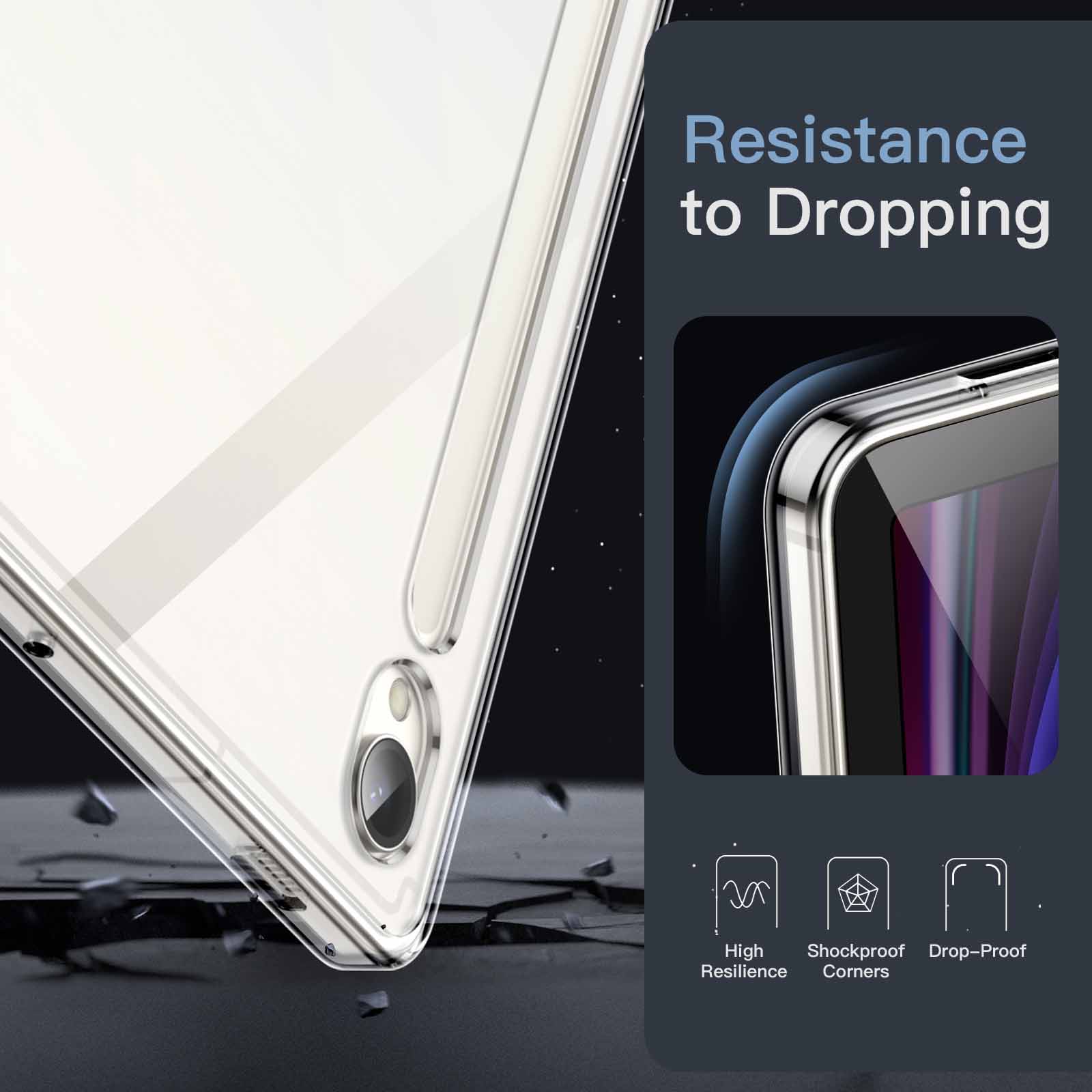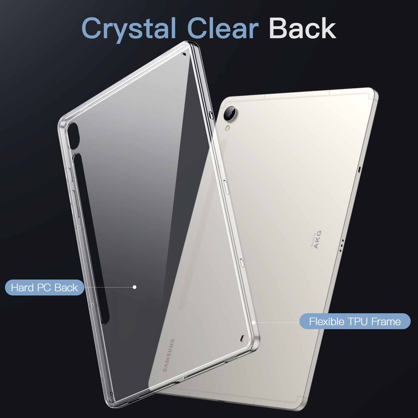 [Hybrid Protection] Built with flexible TPU frame as well as hard PC back, the transparent tablet cover protects your device against daily scratches and shocks