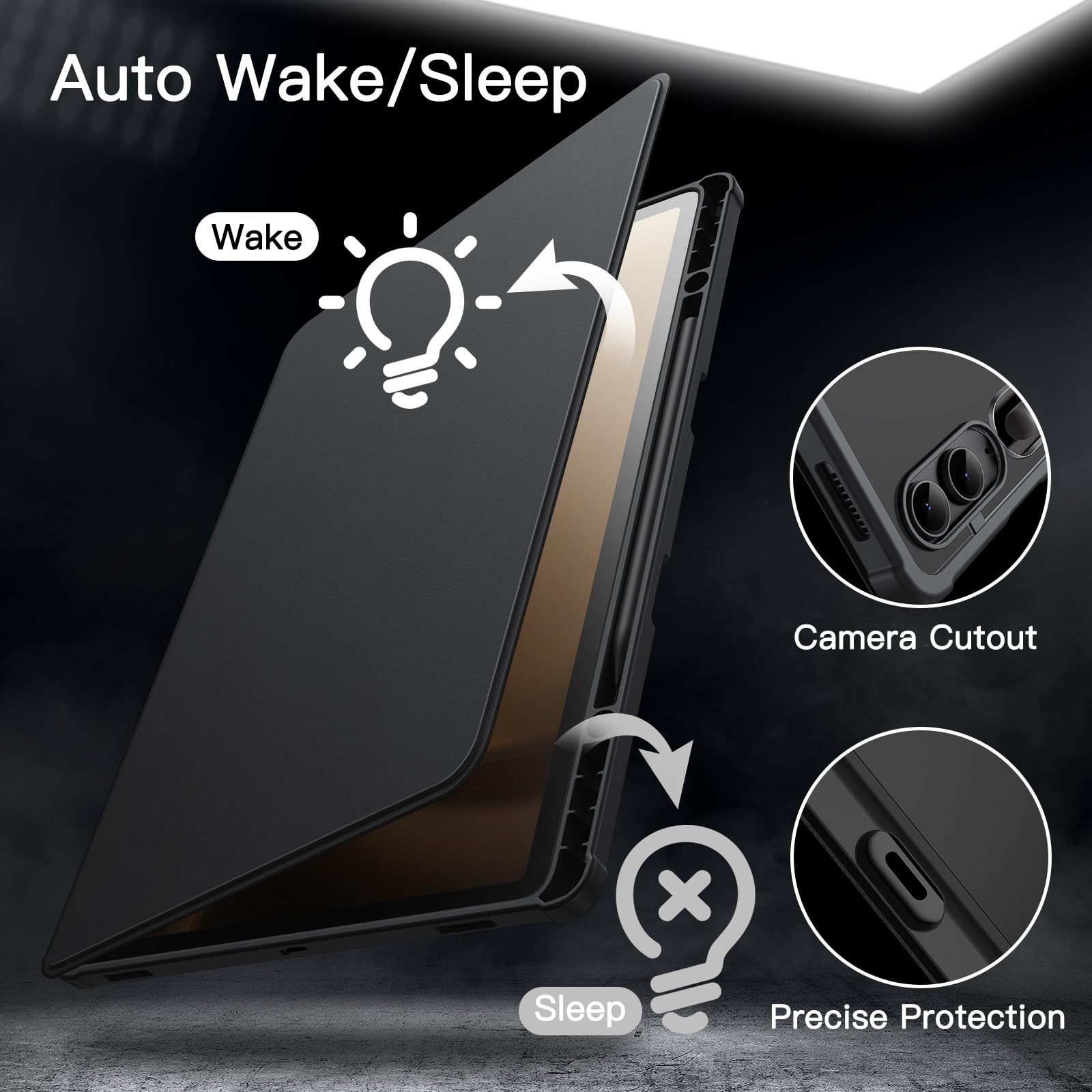 [Auto Wake/Sleep] Wake up the screen or bring it to a sleep mode by opening or closing the front cover. More energy-saving, and the built-in magnet keeps the case securely closed